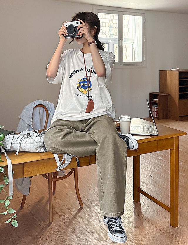 - 캐주얼한 무드의 라운드넥 티셔츠