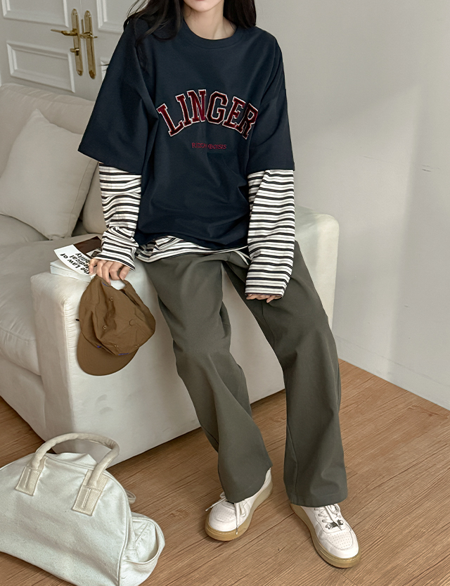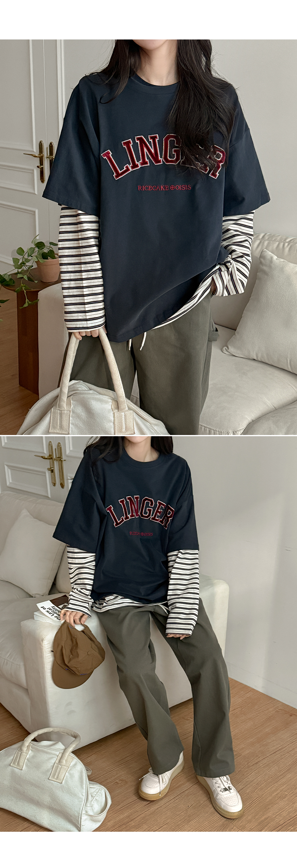 [09초이스][체형커버] 활용갑 린거 ルーズフィット 레터링 刺繍 半袖 ティーシャツ 86330