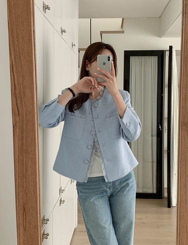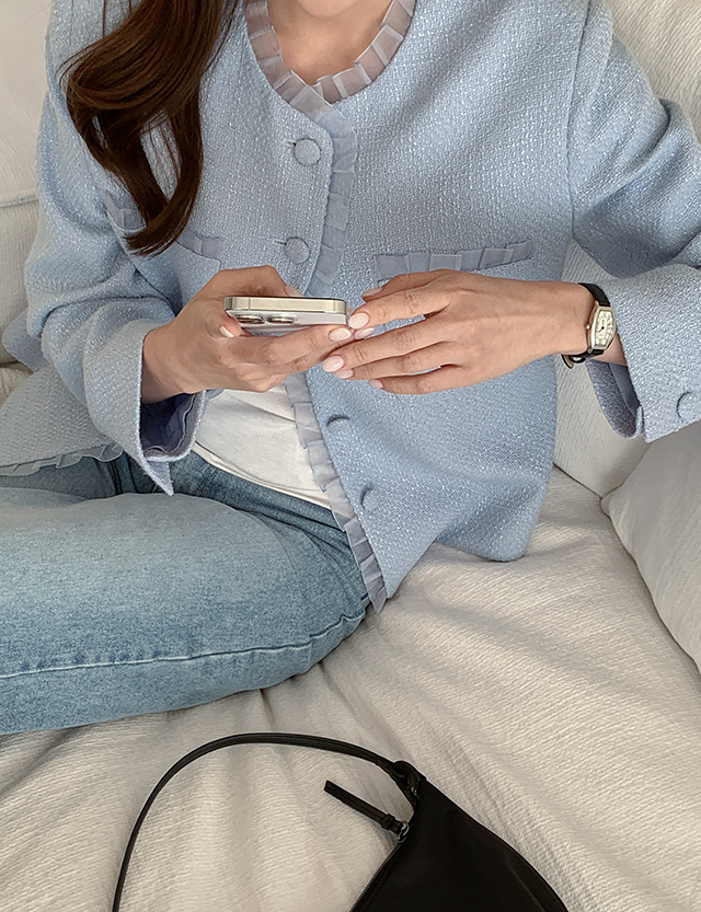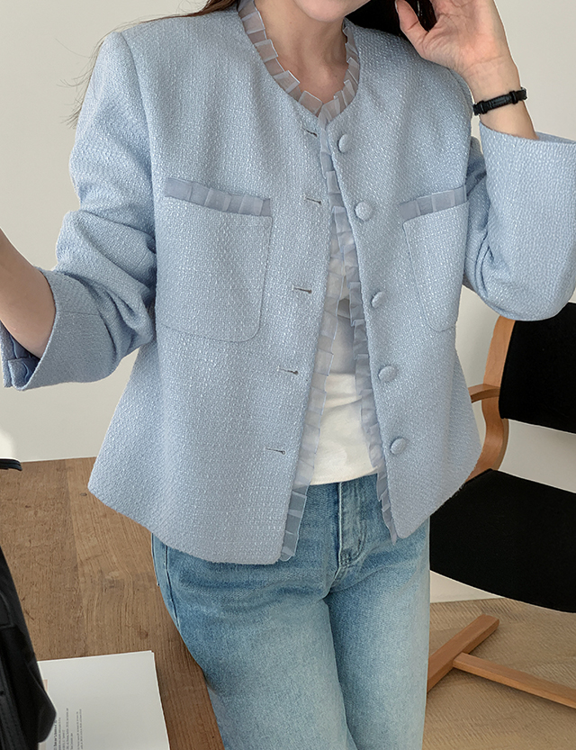 Frill lace tweed jacket