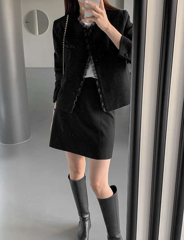 - 클래식한 트위드 텍스처로 고급스러운 분위기