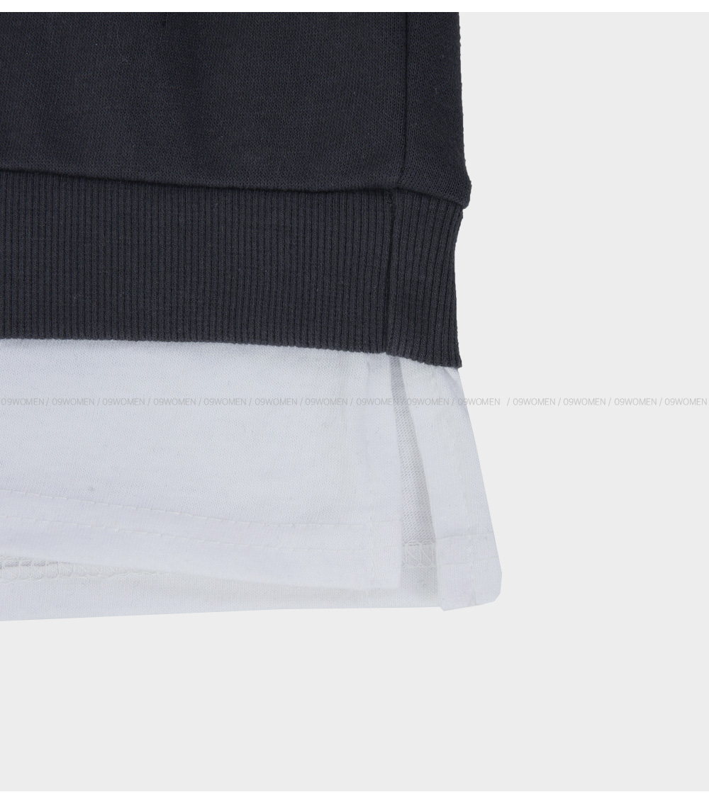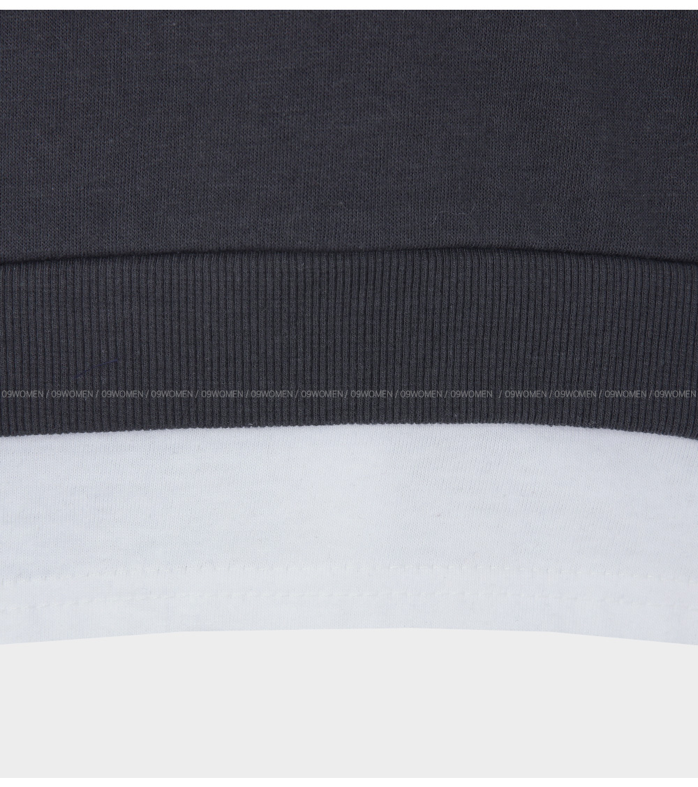 - 맨투맨 밑단의 레이어드 연출로 스타일리시한 포인트