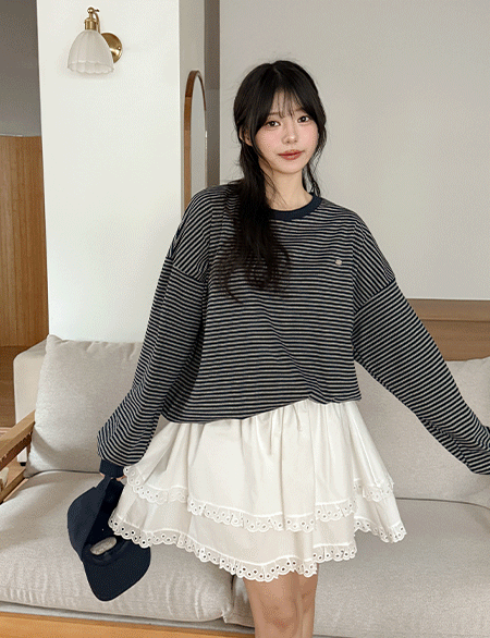 과하지 않은 은은한 스트라이프 패턴으로 코디에 포인트를 주는 맨투맨이랍니다.
