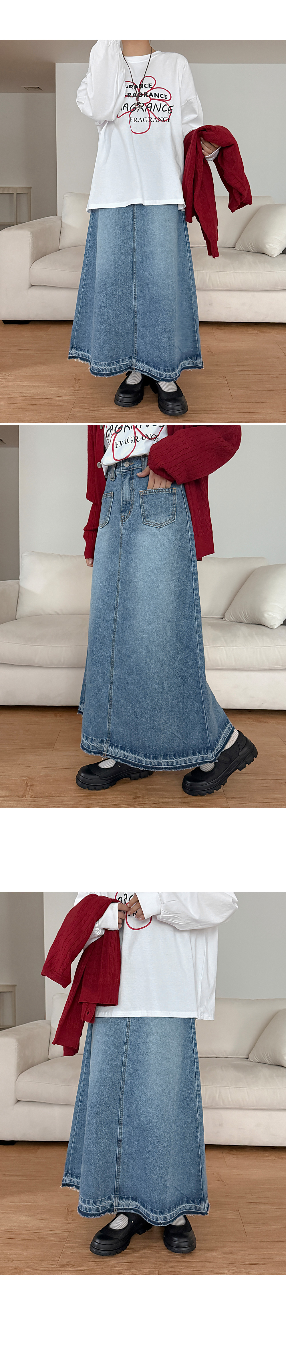 체텀 아웃포켓 Aライン デニム スカート 86418