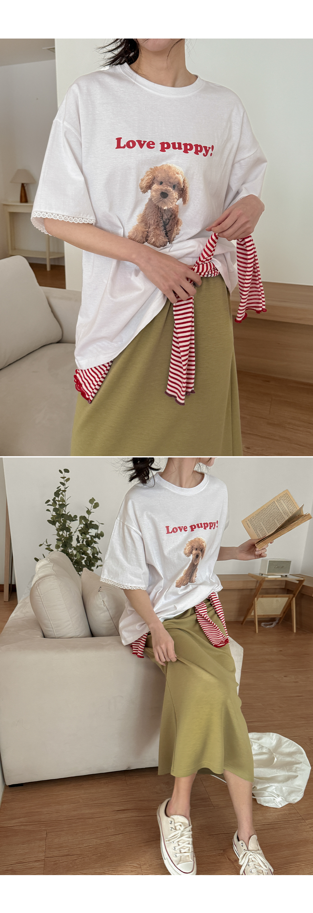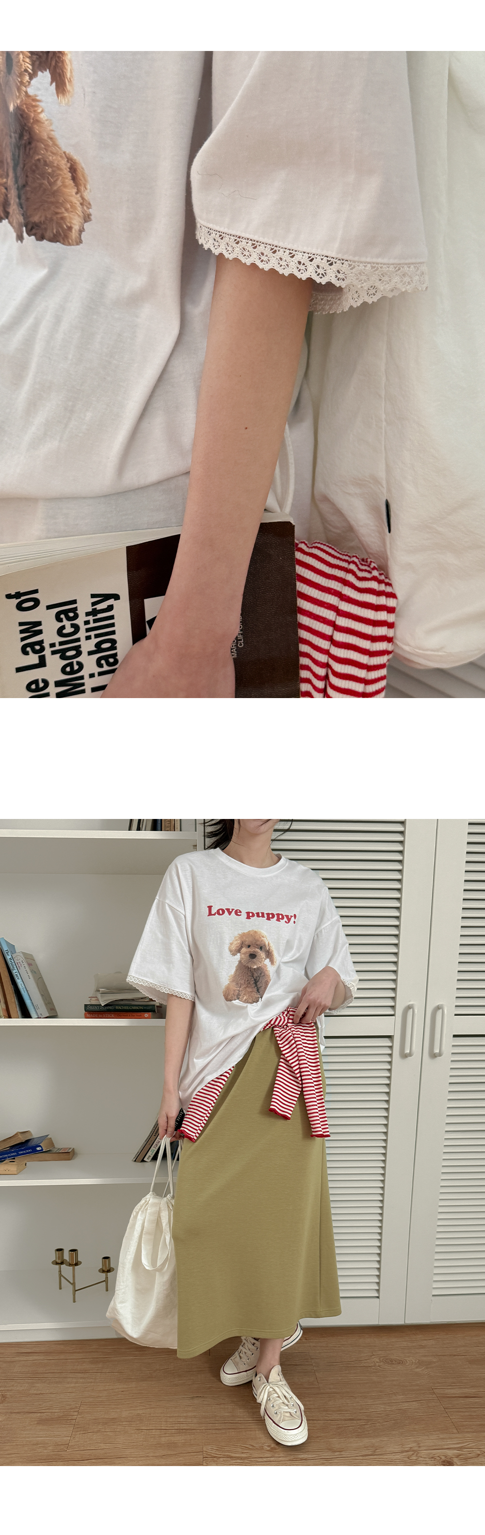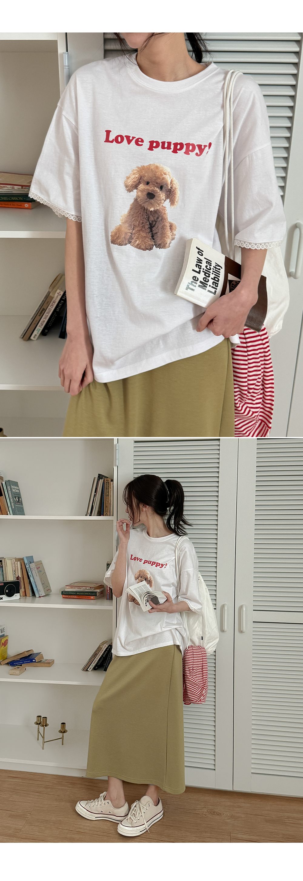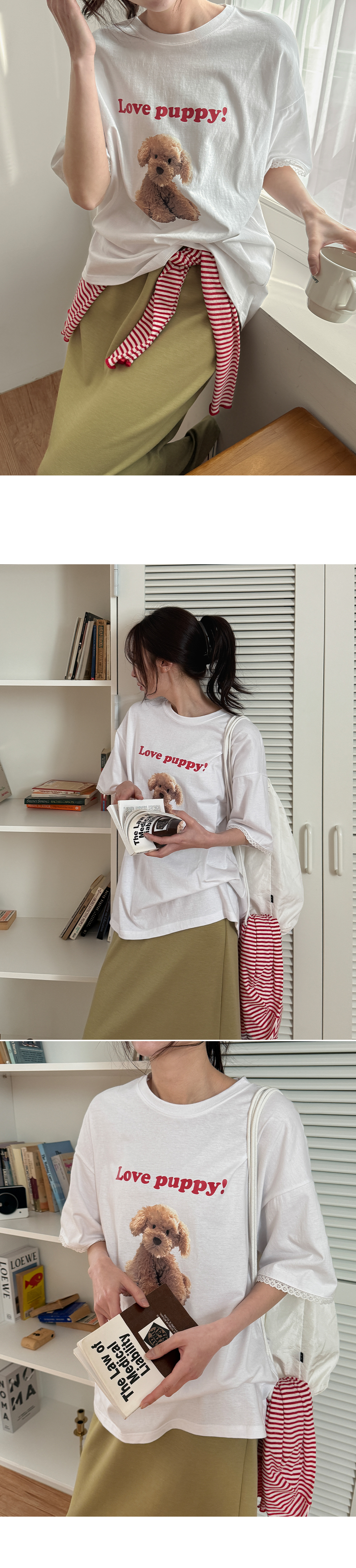 - 귀여운 강아지 프린팅과 레터링으로 밋밋하지 않은 포인트