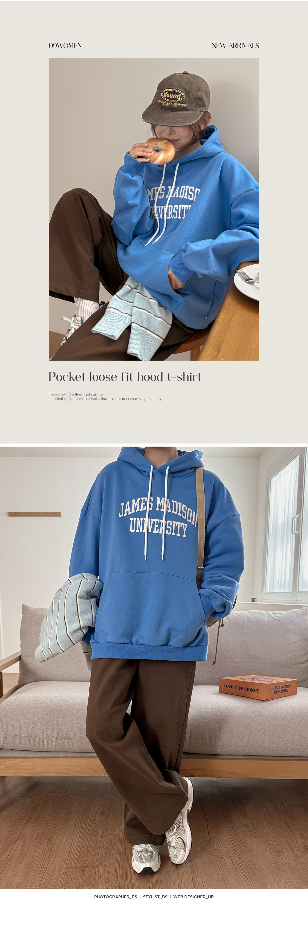 - 감각적인 레터링 포인트를 더한 후드 티셔츠