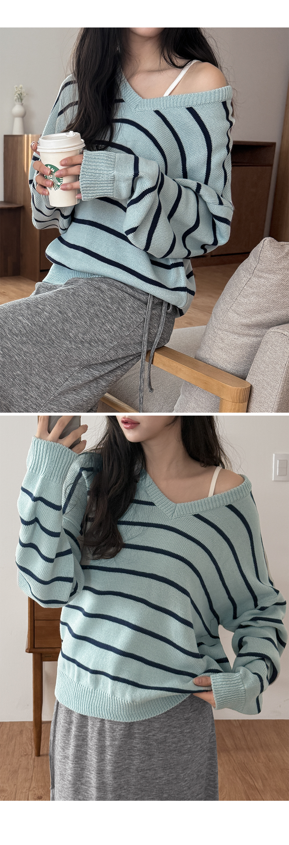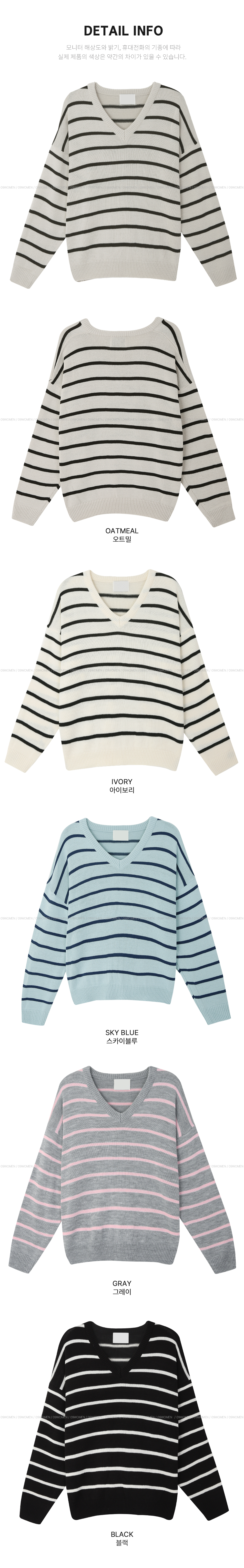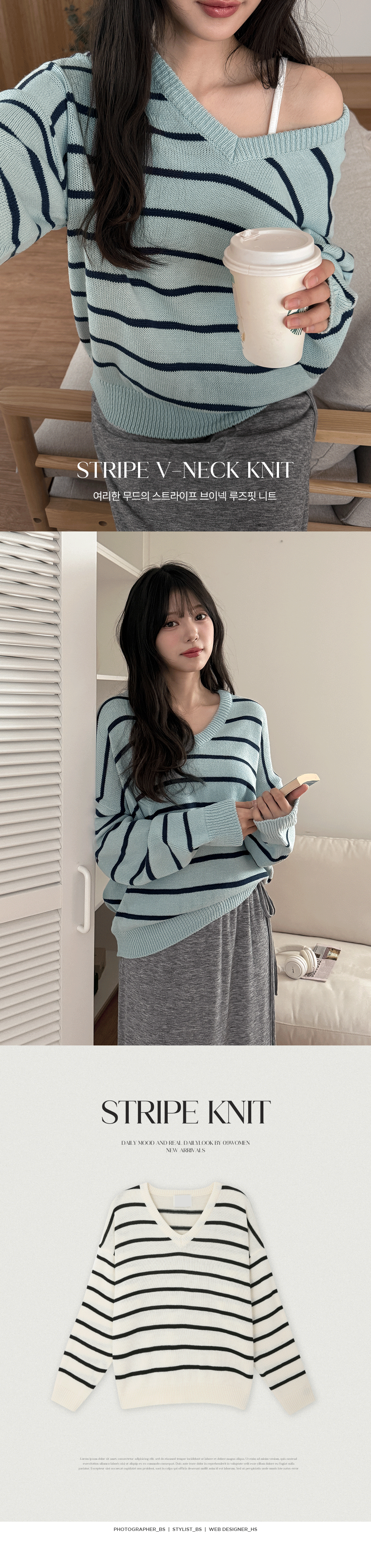 - 여리한 무드의 스트라이프 브이넥 루즈핏 니트