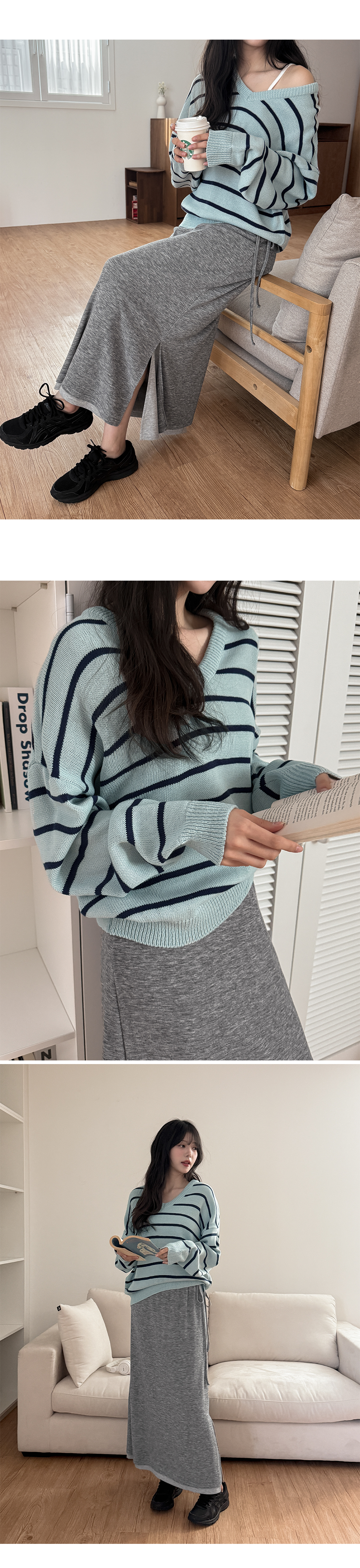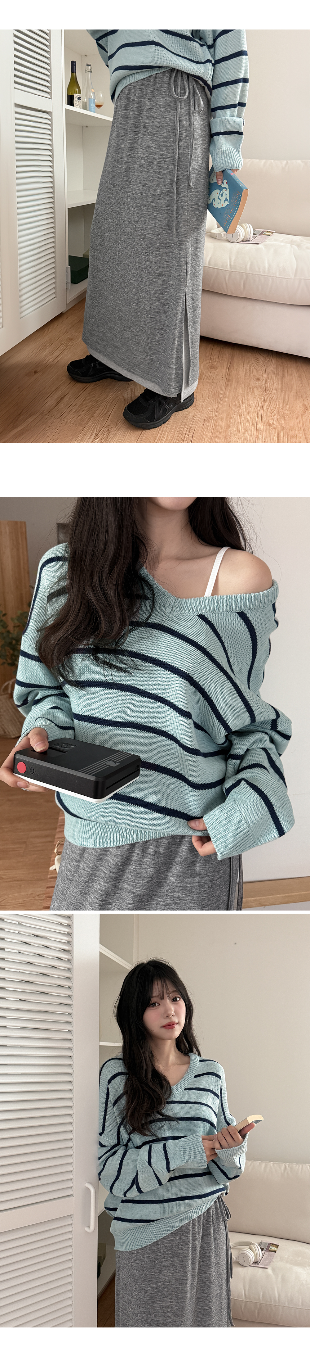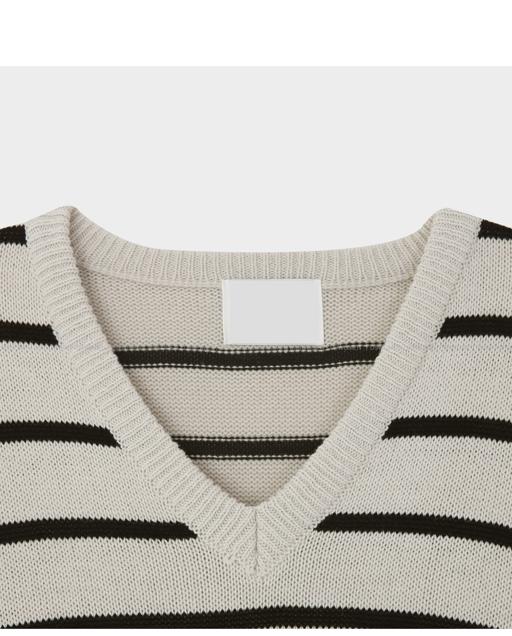 - 여리한 무드의 스트라이프 브이넥 루즈핏 니트