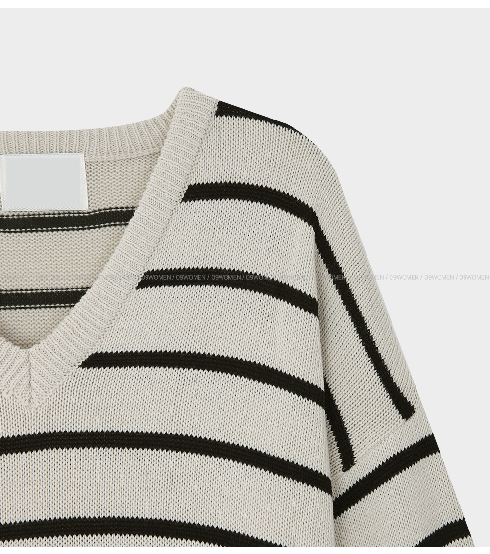 오르크 ストライプ Vネック ルーズフィット ニット 86600