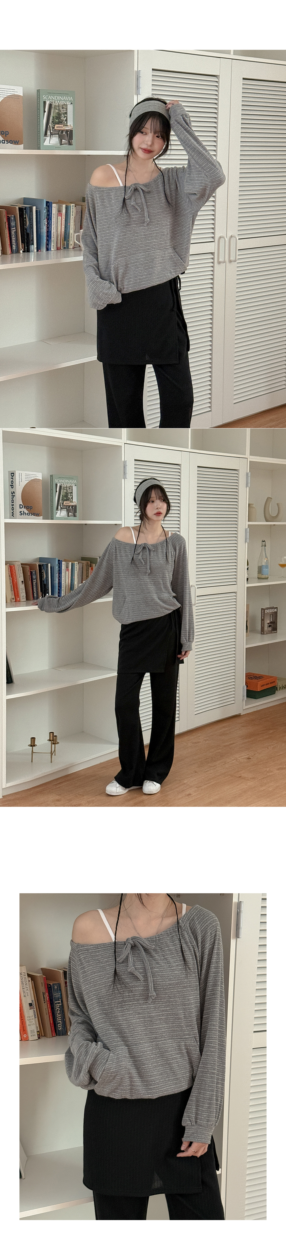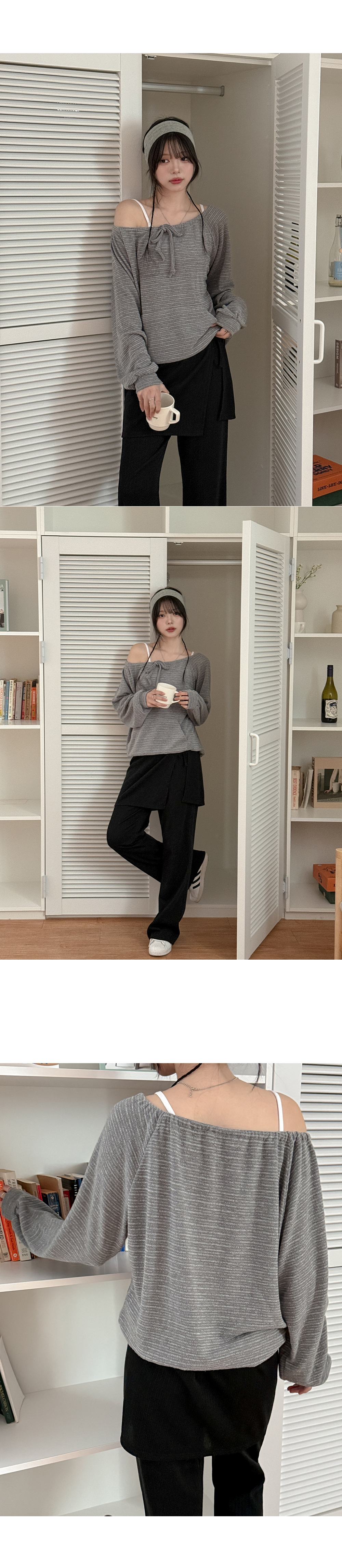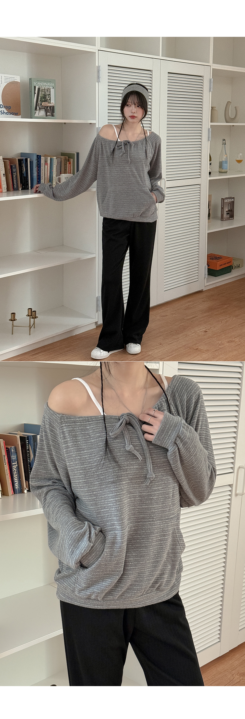 - 넥 라인 조절이 가능해 투웨이로 연출 가능
