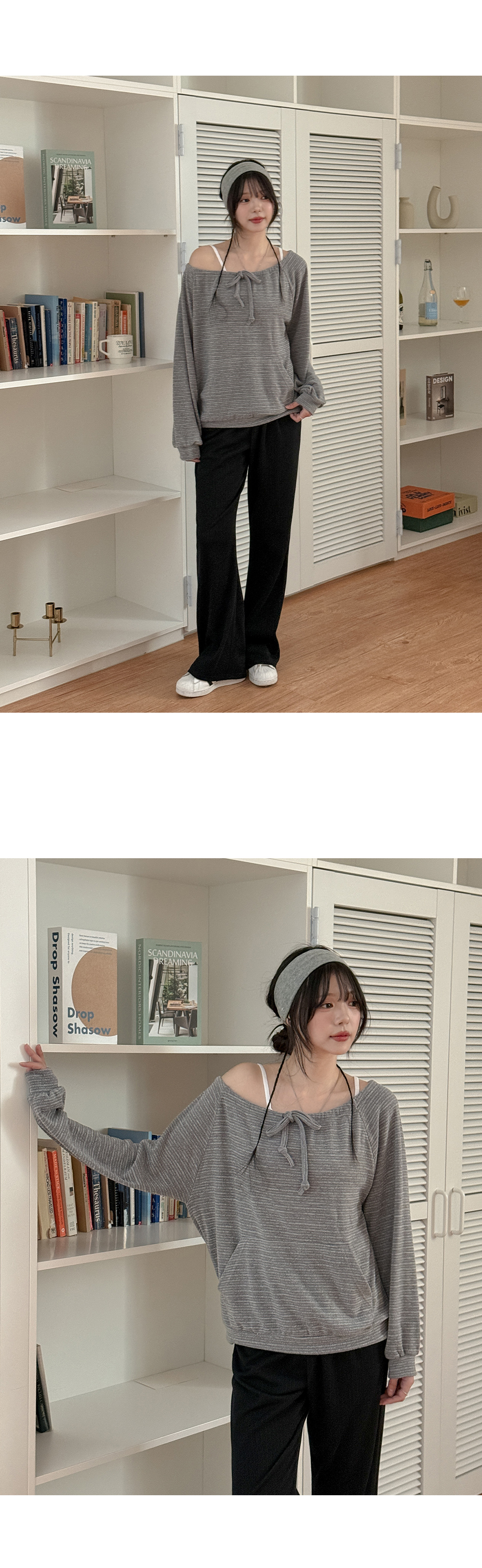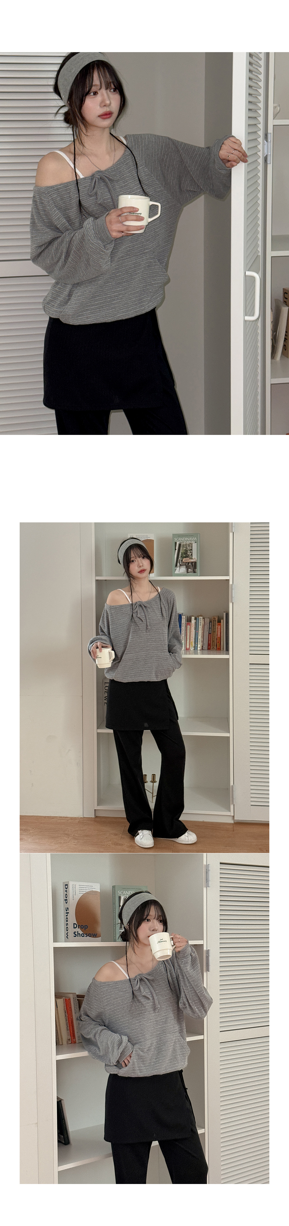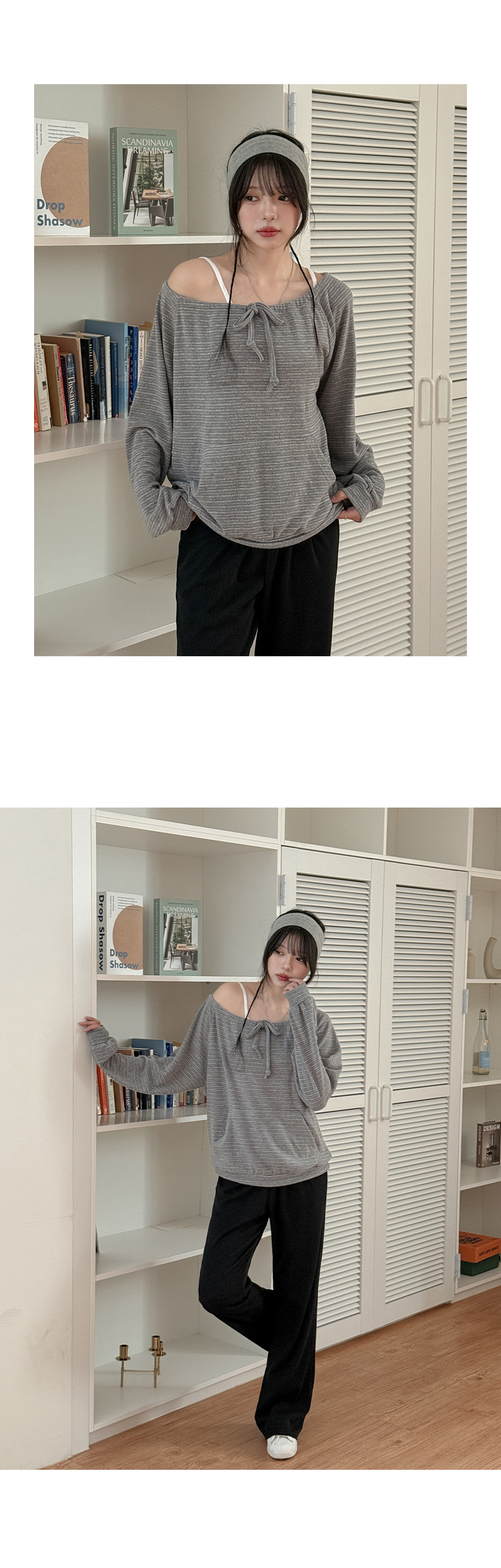 - 넥 라인 조절이 가능해 투웨이로 연출 가능