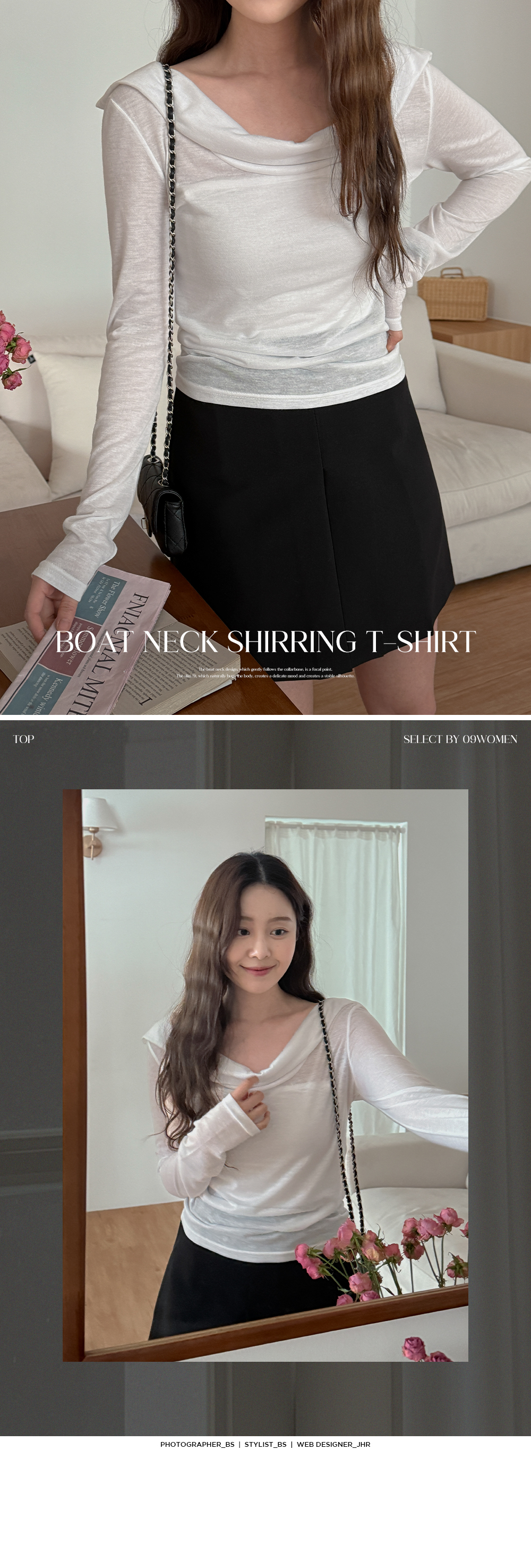 - 쇄골 라인을 따라 부드럽게 떨어지는 보트넥 디자인