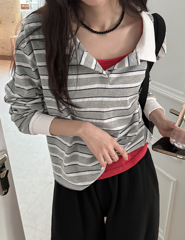 코멜 クロップド ストライプ カラー ティーシャツ 86802