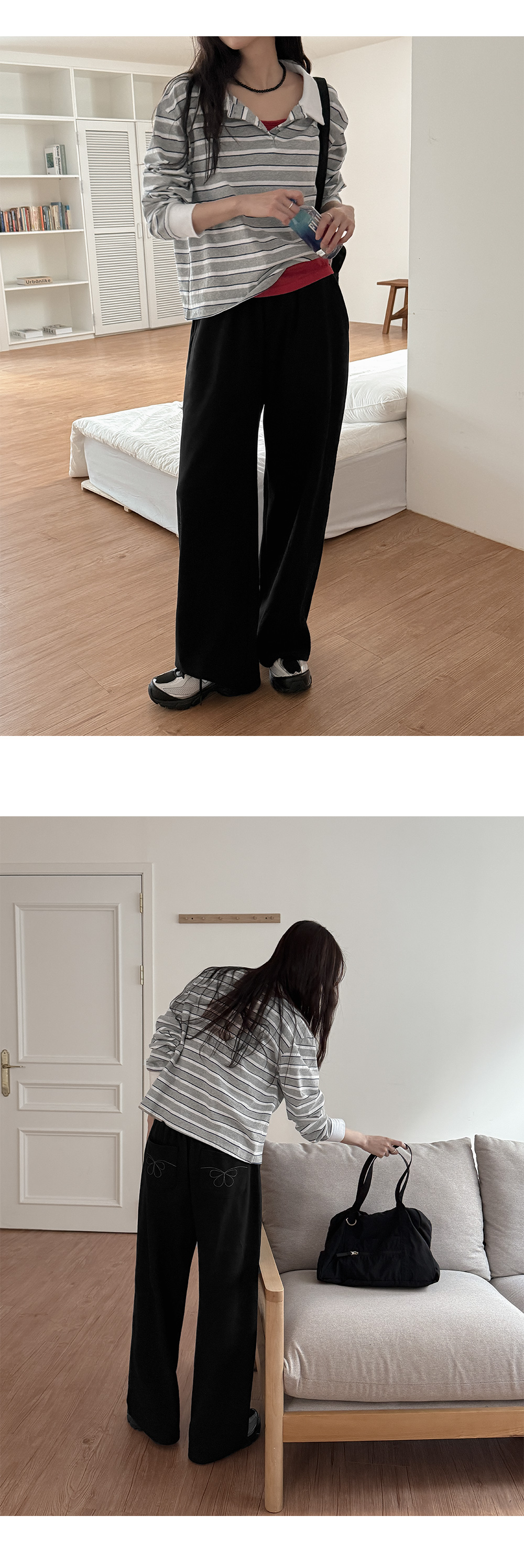 - 크롭 기장감으로 레그라인을 롱하게 연출