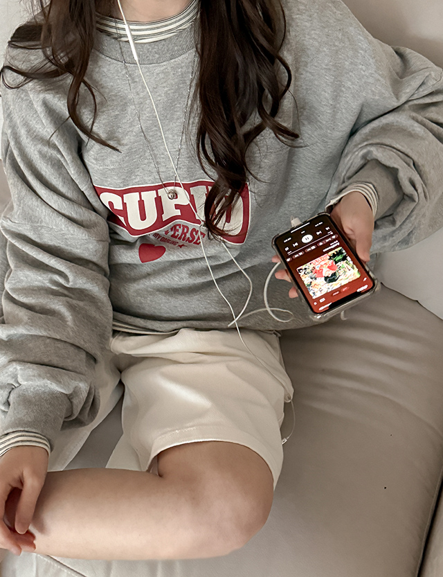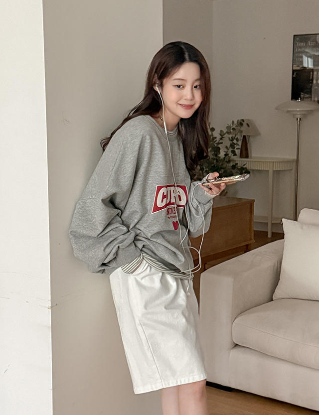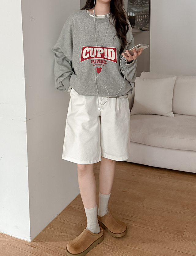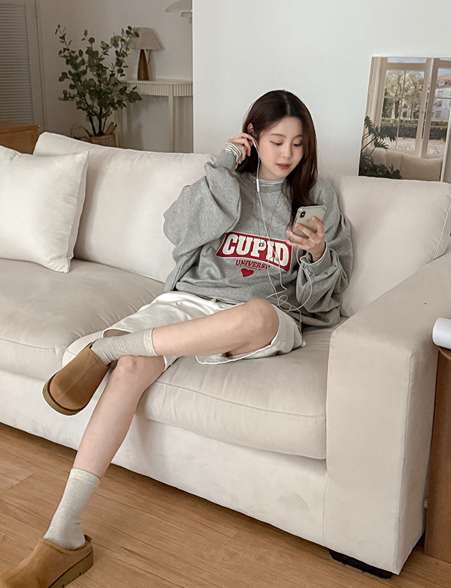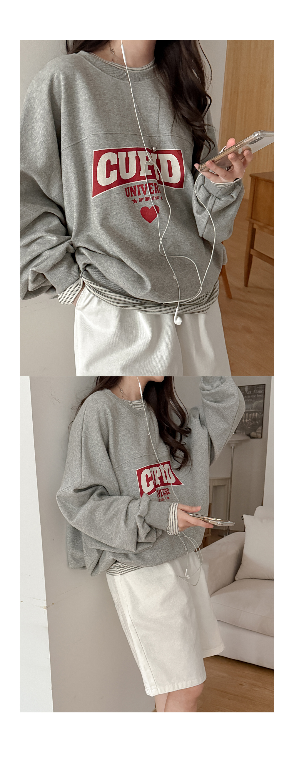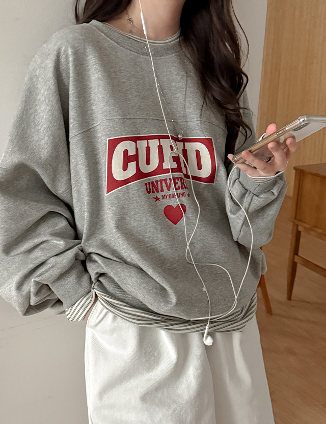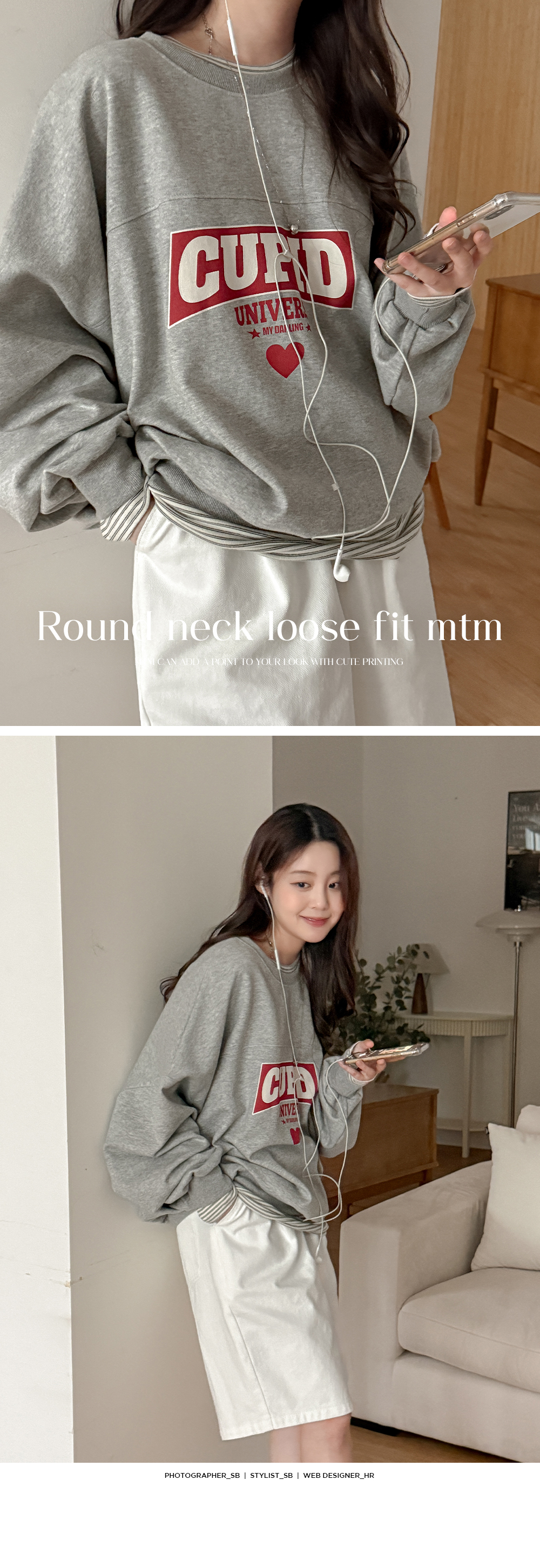 큐피텐 ラウンドネック プリンティング ルーズフィット スウェット 86674