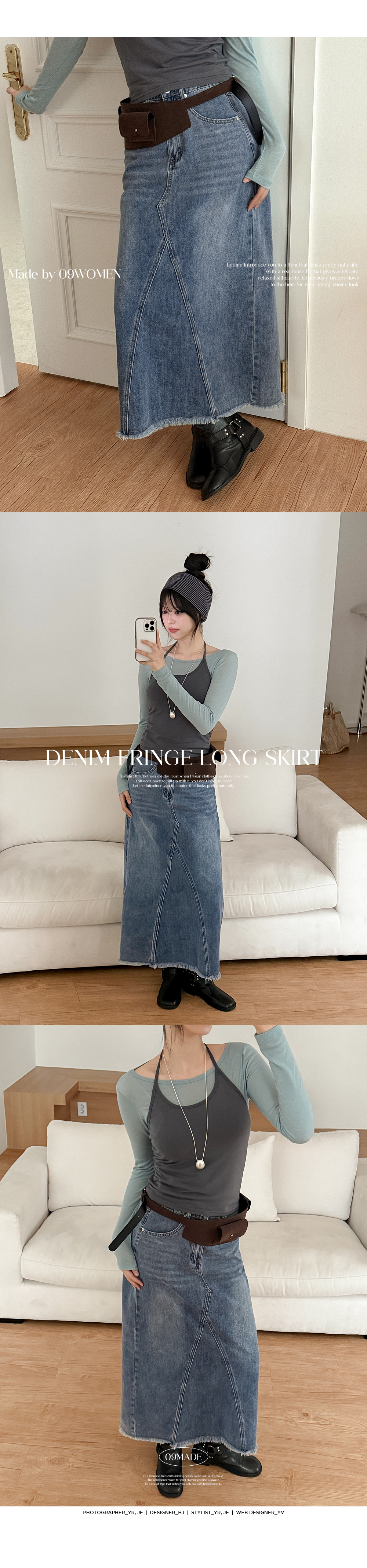 존헨 뒷밴딩 デニム 프린지 ロング スカート 86689