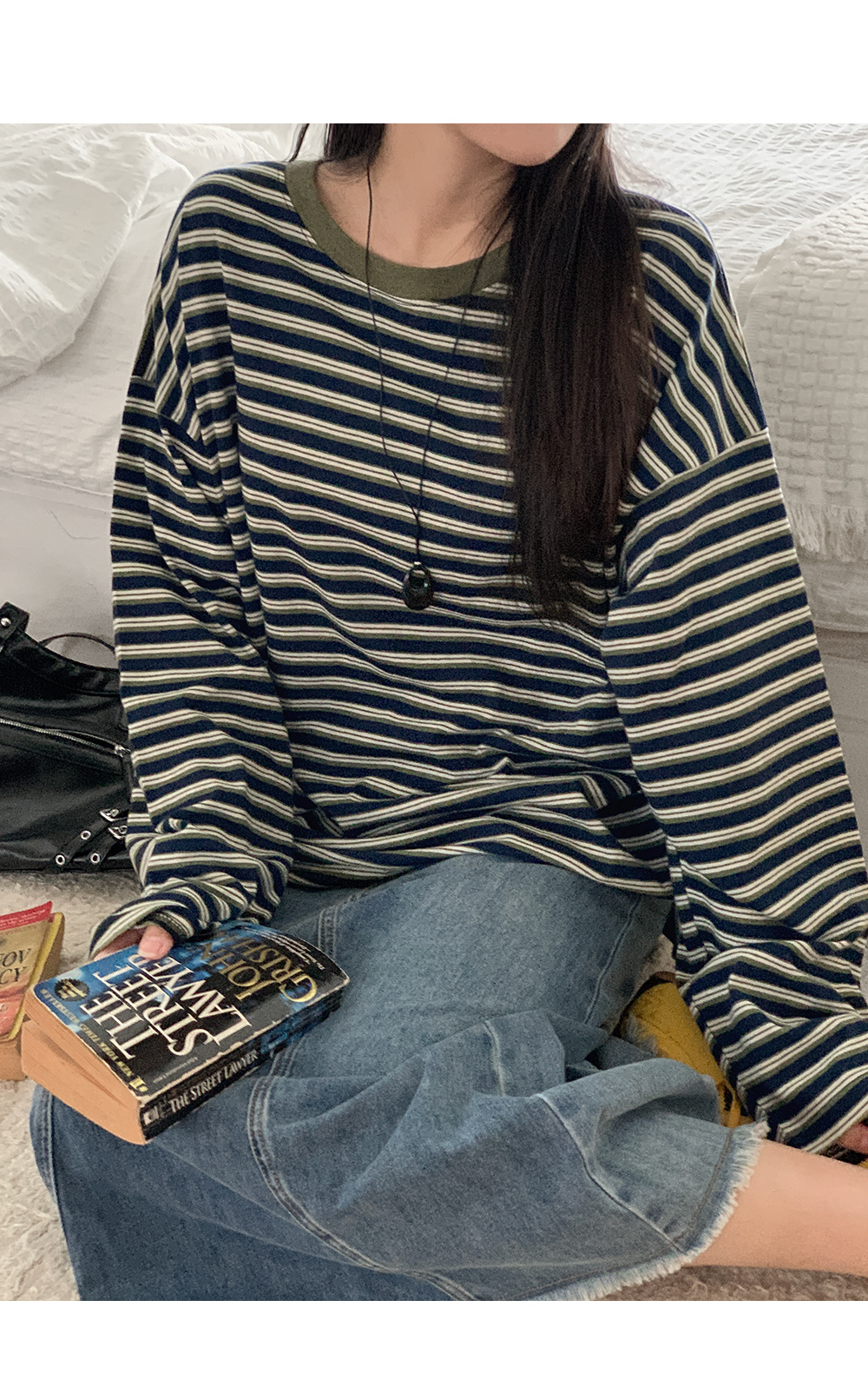 블루톤의 워싱 컬러감으로 상의를 심플하게