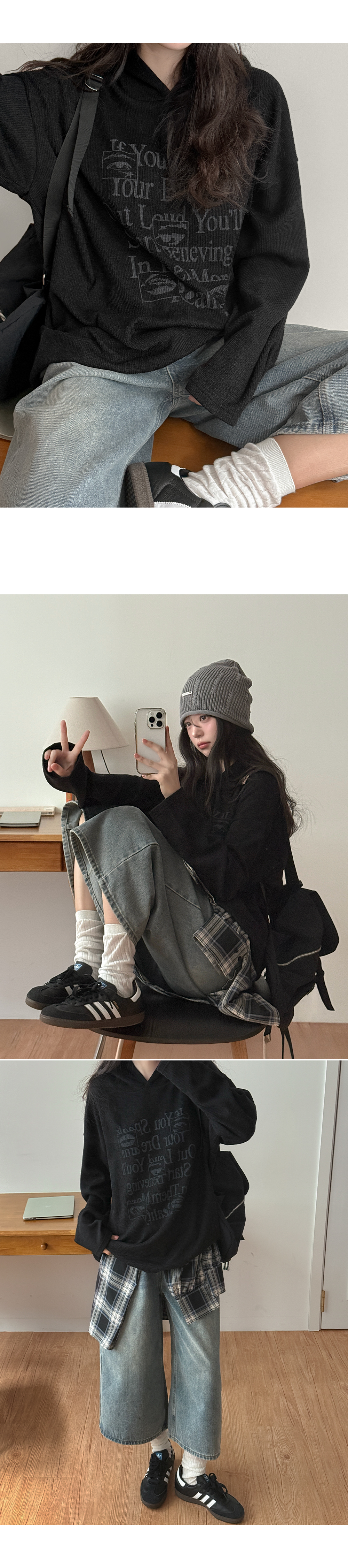 • 씨유나우 リブ編み フード  ティーシャツ 86855