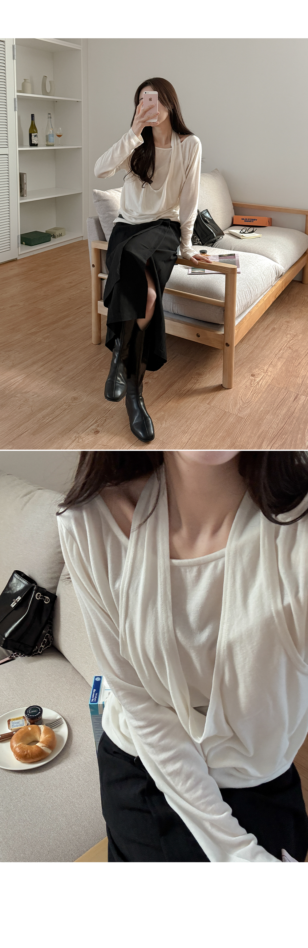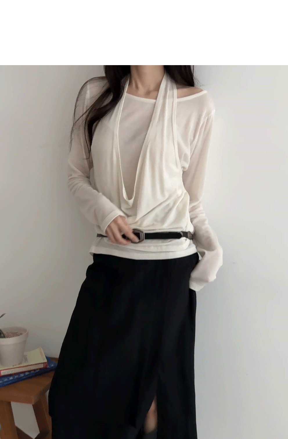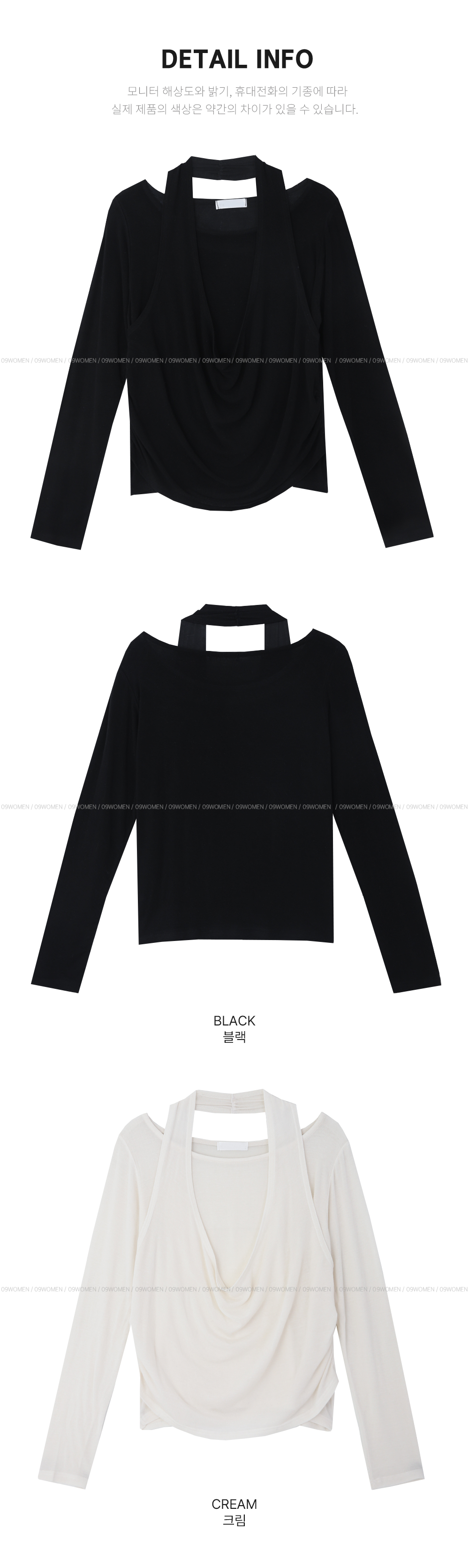 - 목선을 자연스럽게 강조하여 여리여리한 실루엣 연출