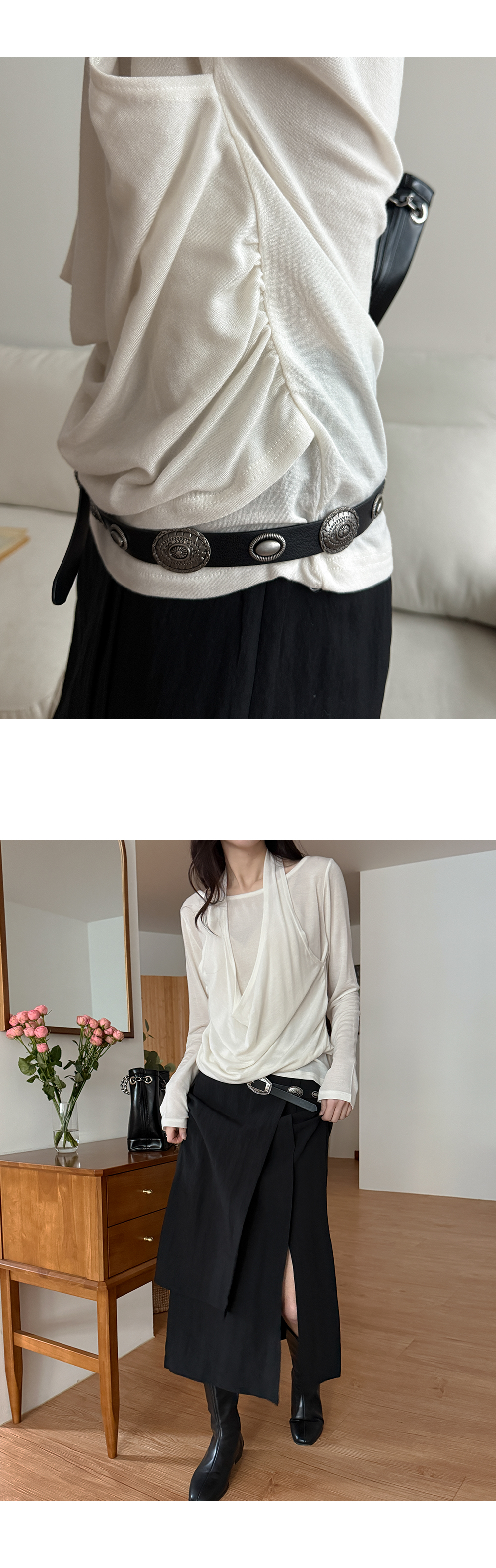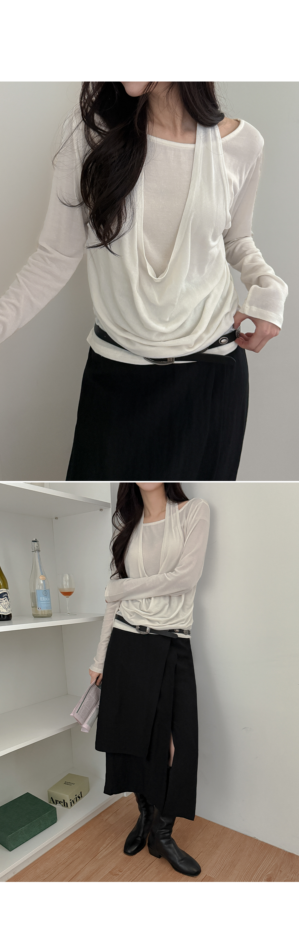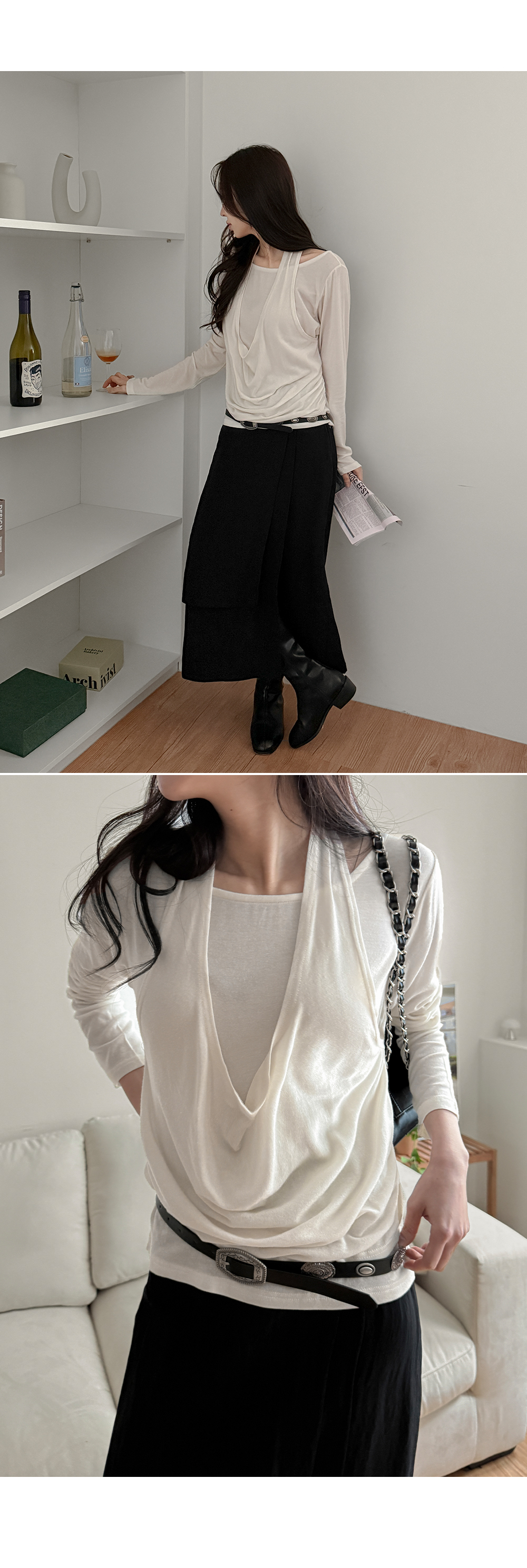 - 트렌디한 홀터넥 디자인에 레이어드 스타일 티셔츠