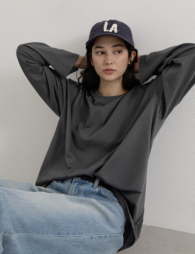 살짝 드롭되는 어깨와 힙라인이 충분히 커버되는 기장감 루즈한 핏으로 편안한 착용감