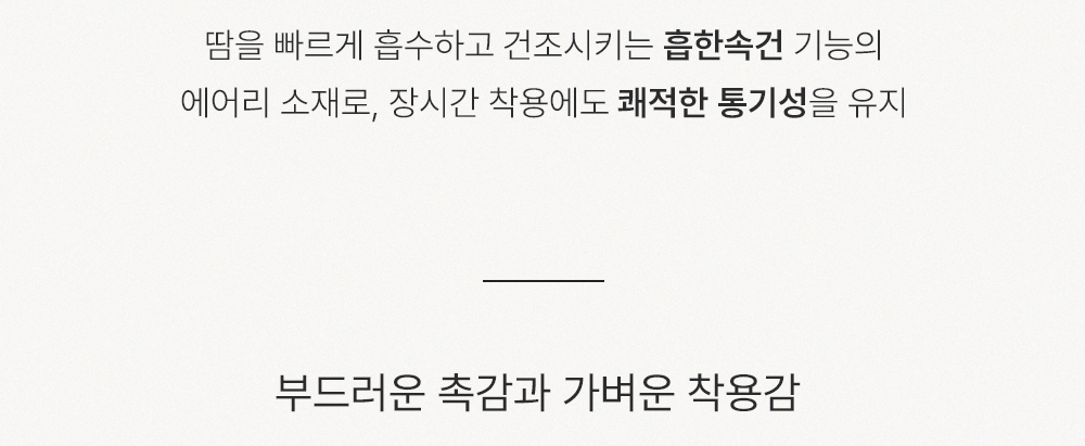 · 통기성이 좋아 시원하고 쾌적한 착용감