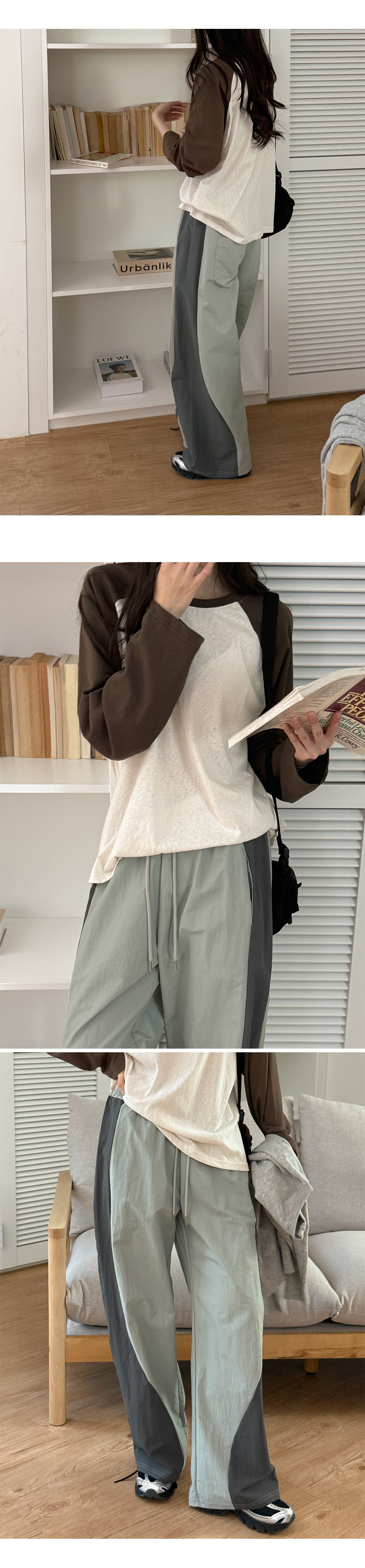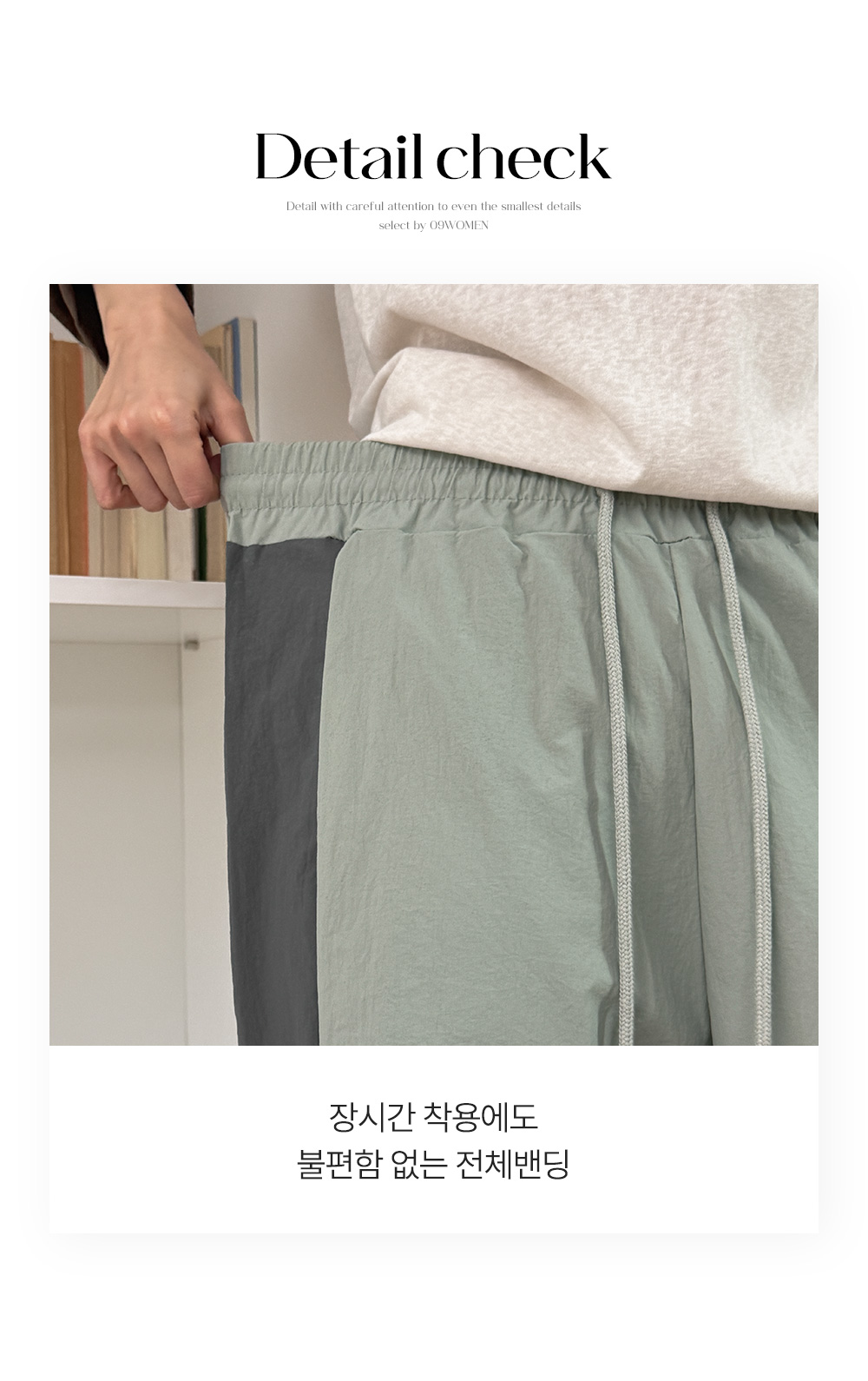 - 넉넉한 와이드핏에사이드 배색 디테일로
