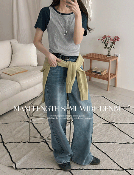 • 업다운 리얼 맥시기장 세미 ワイド 뒷밴딩 デニム パンツ 86878