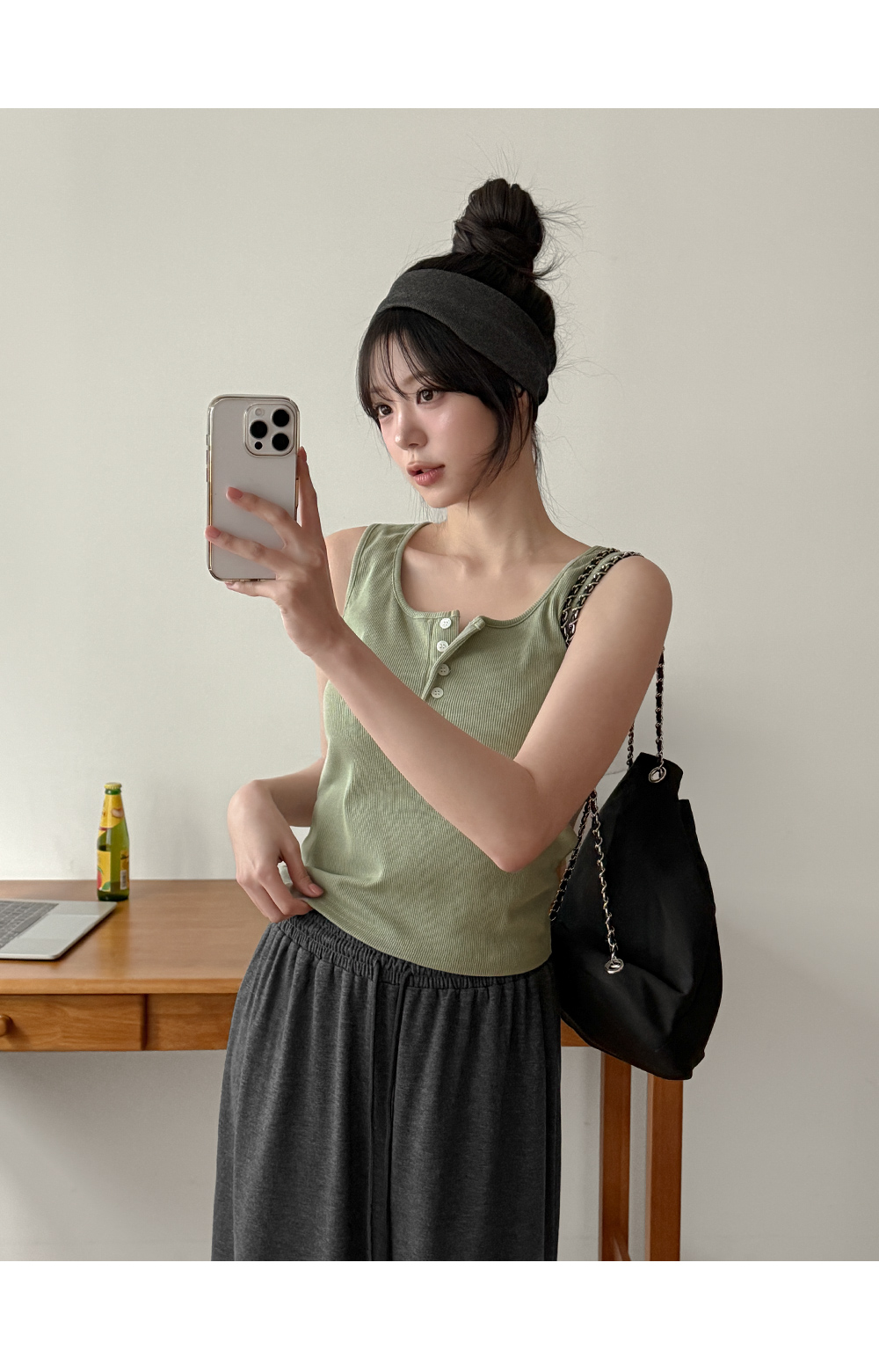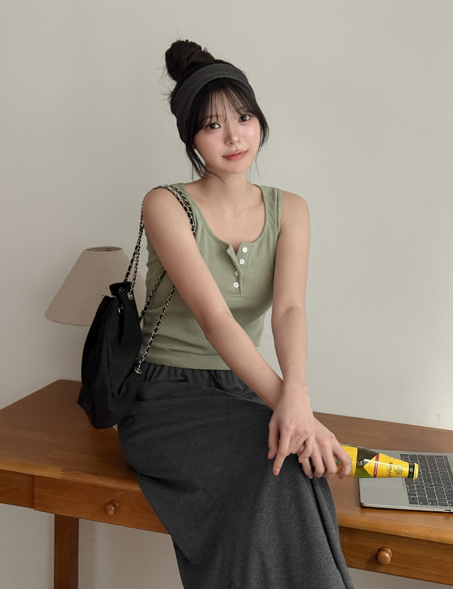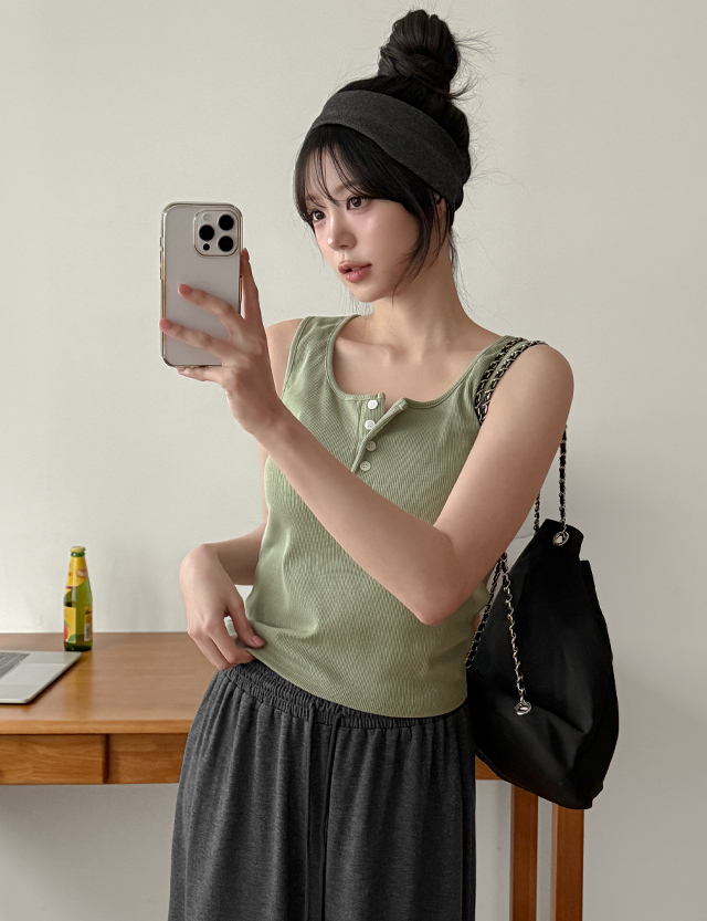 Basic button sleeveless top