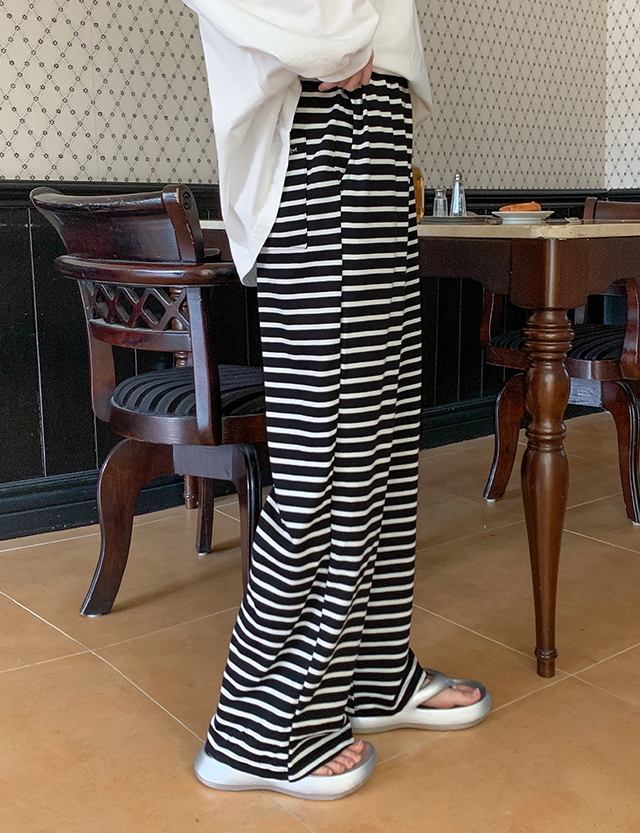 Banding Striped Wide Pants
