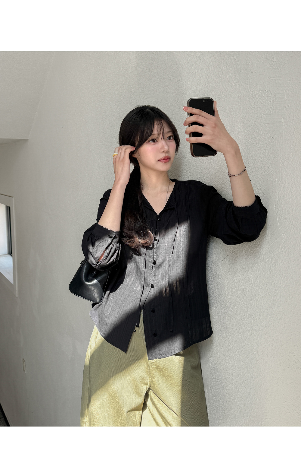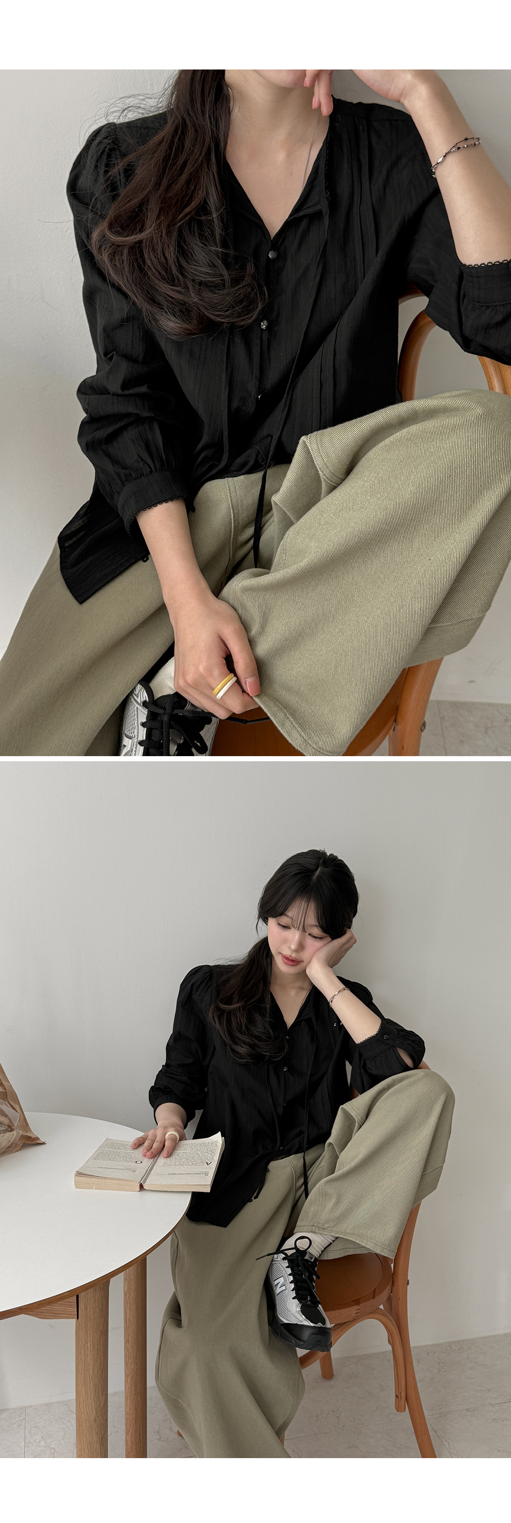 - 여유 있는 아웃핏으로 편안하면서도