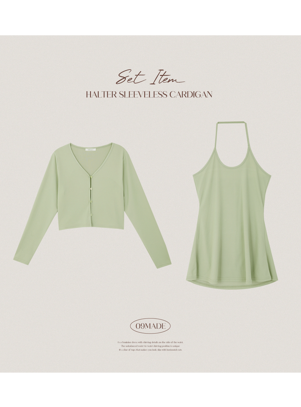 여리여리핏 ホールターネック フレア 袖なし カーディガン セットアップ 87029