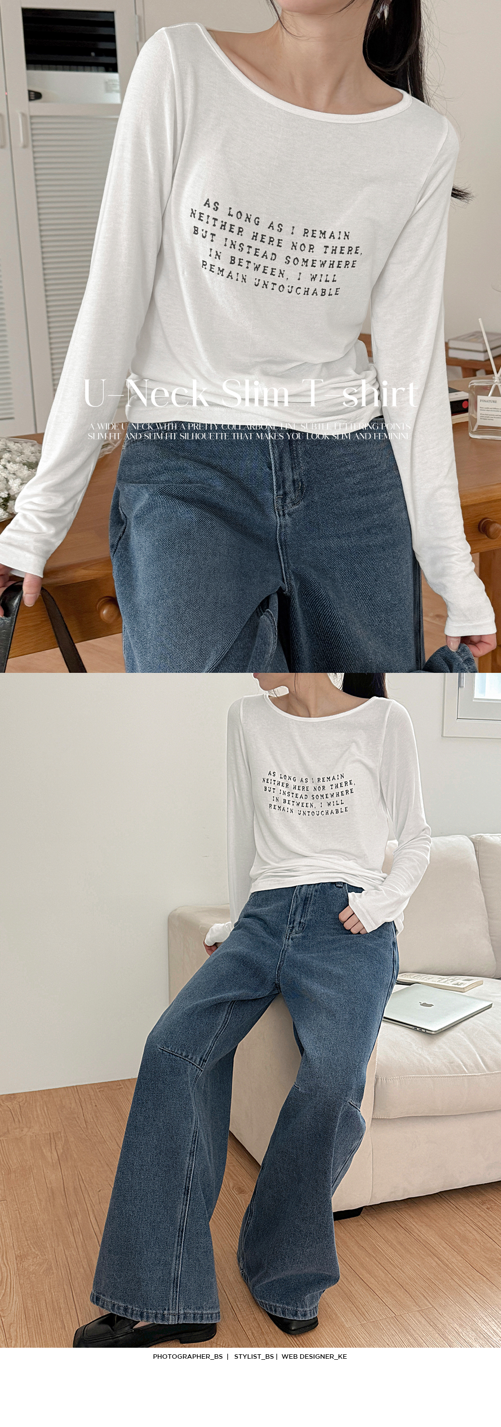 Wide U-Neck Slim T-Shirt