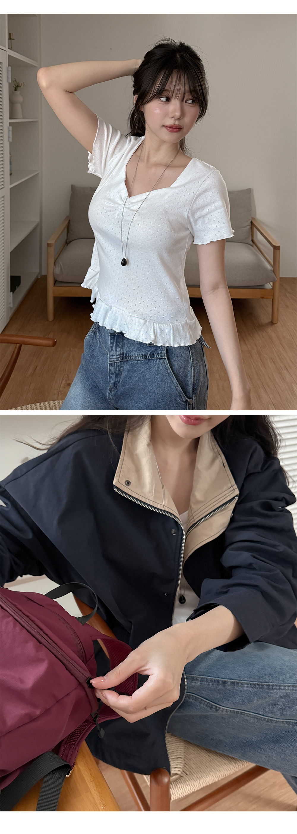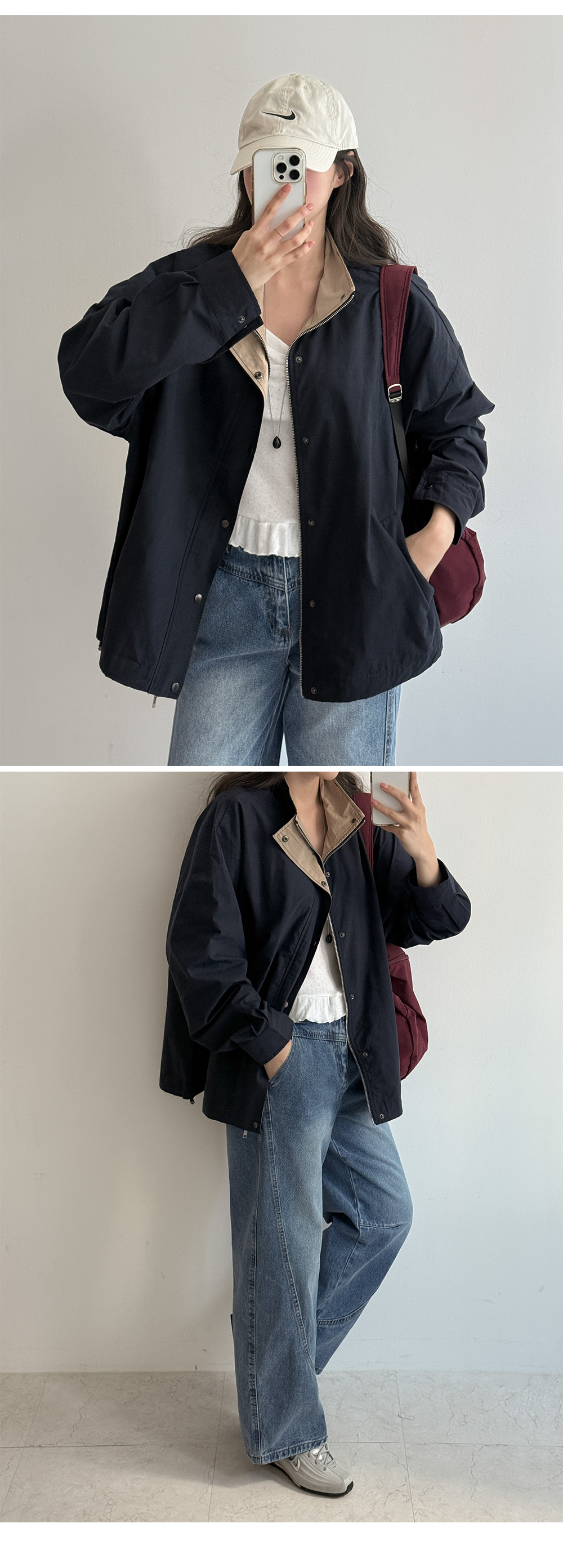 다빈 カラー 配色 밑단 ストリング ルーズフィット ジャケット 87114