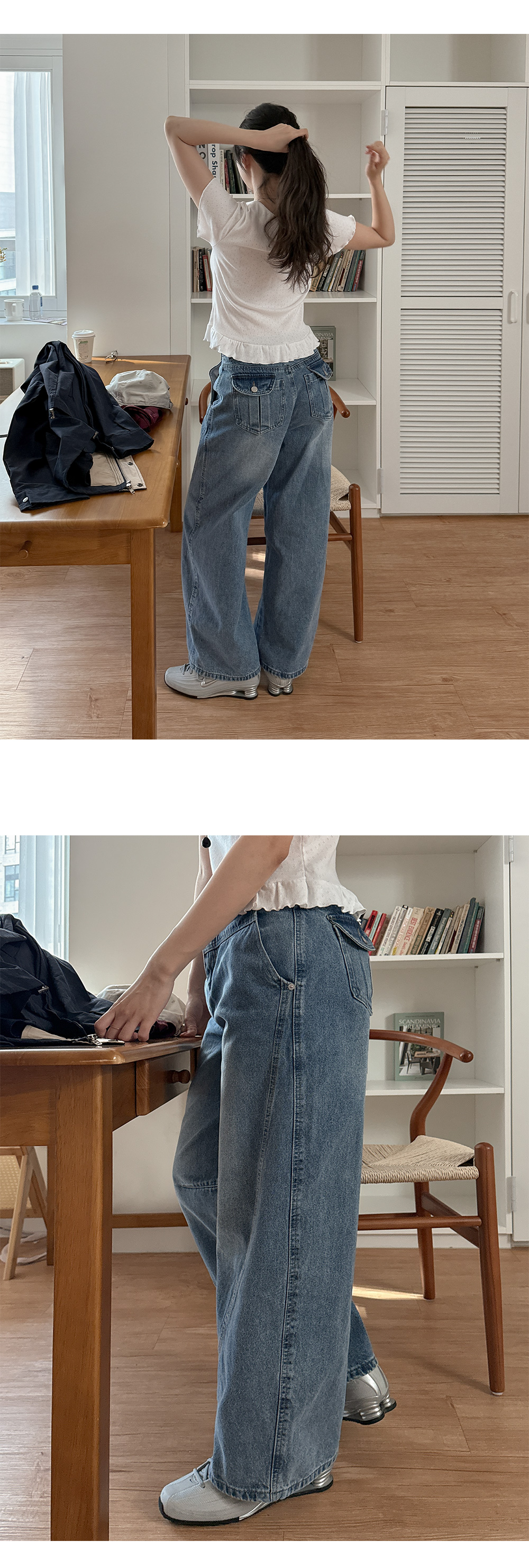 [2가지기장] 켄디 커브드 라운딩 ワイド デニム パンツ 87116