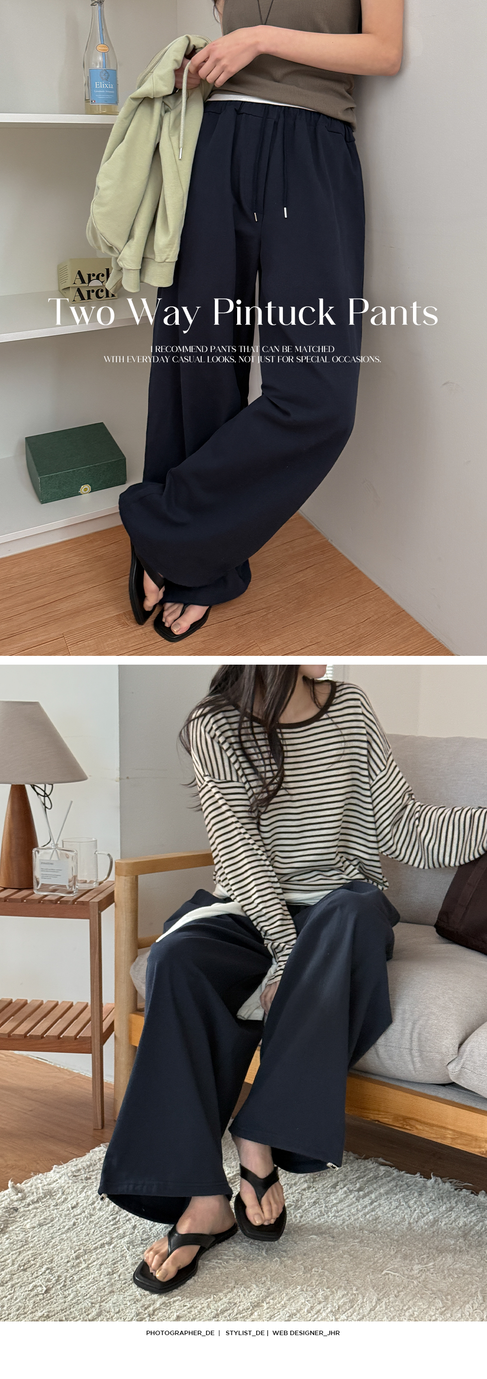 채리카 ゴム バルン ワイド 2way 핀턱 パンツ 87073