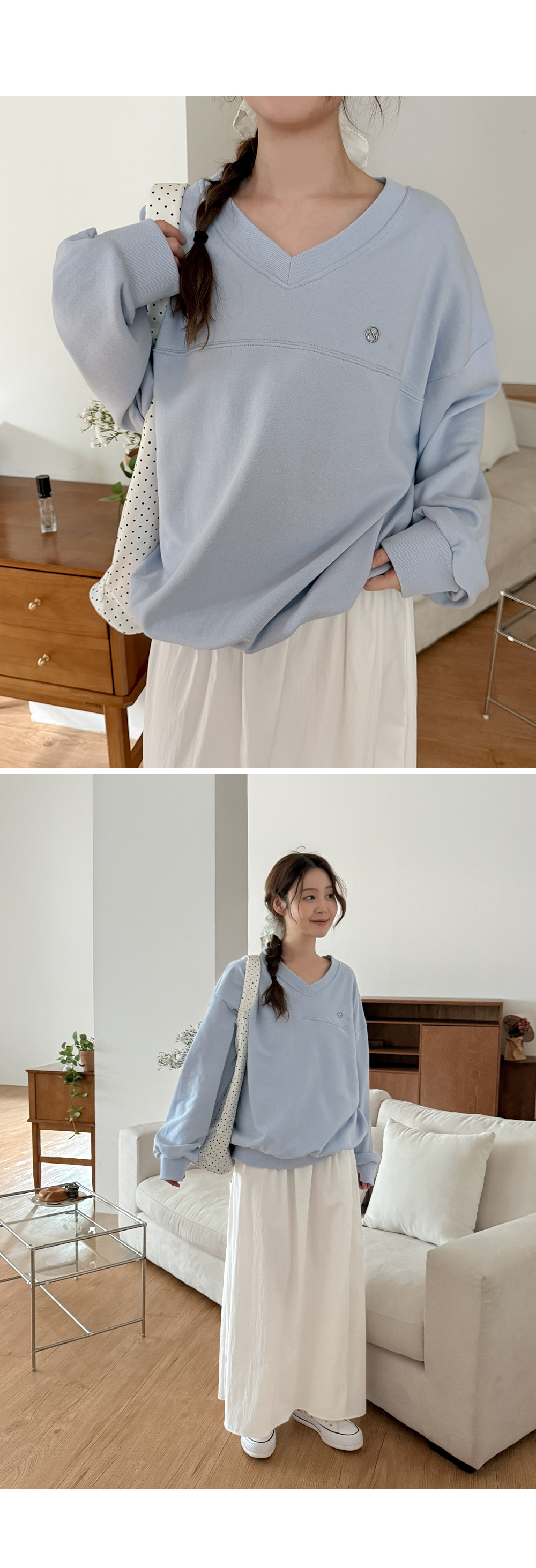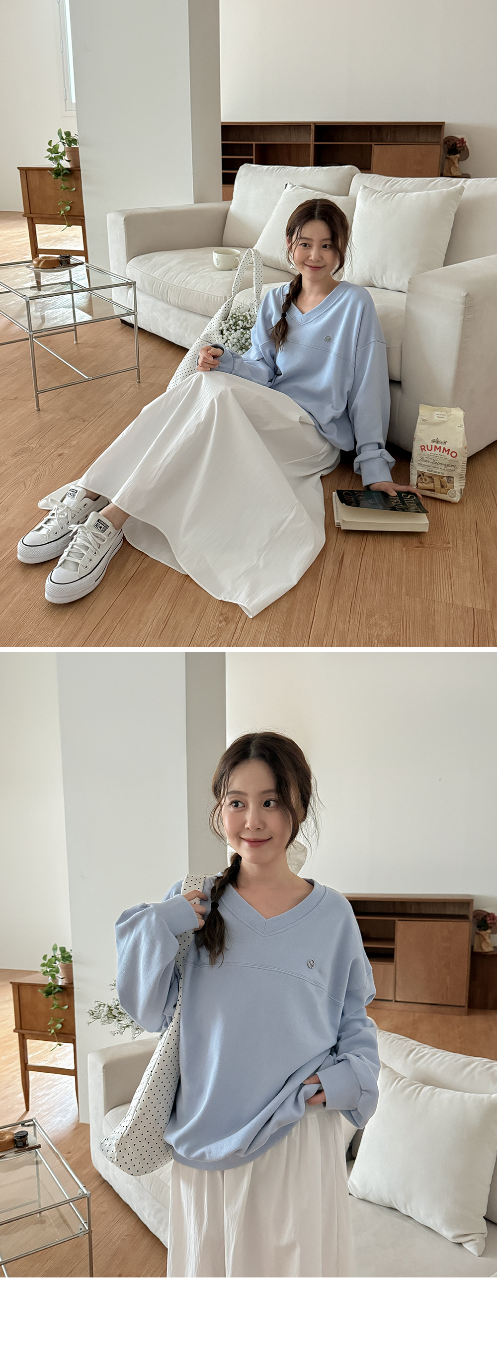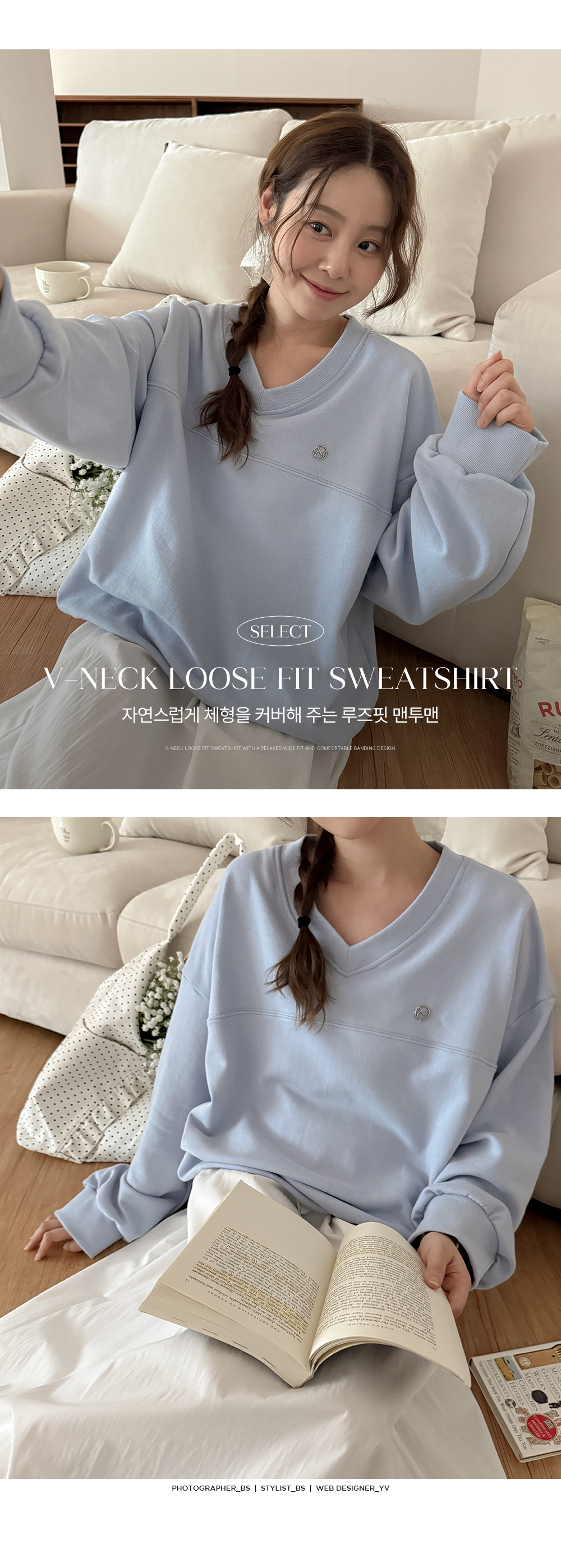 - 여리여리한 실루엣을 완성해 주는 브이넥 맨투맨