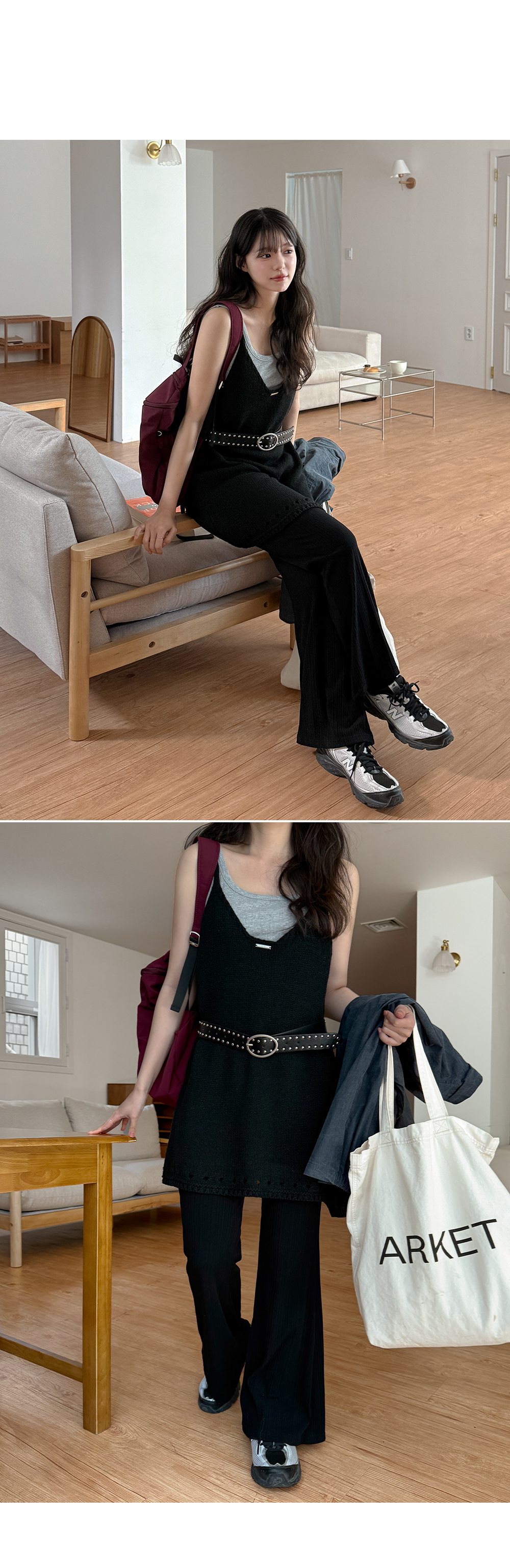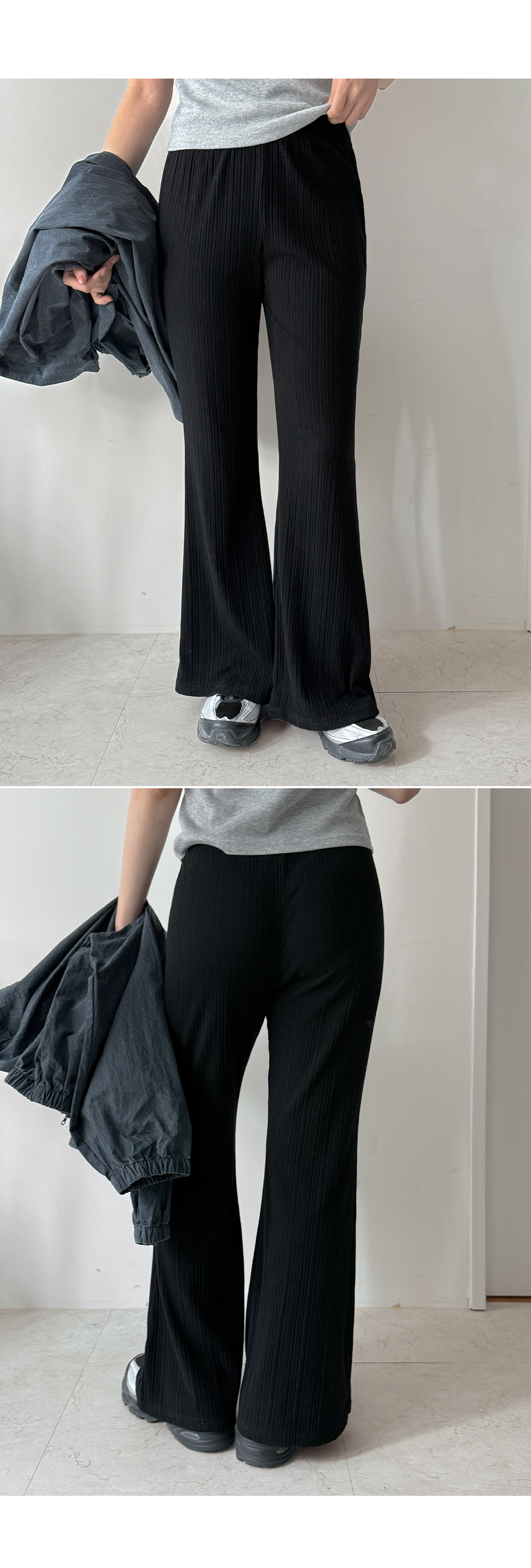 - 세로 골지 텍스처로 슬림한 보정 효과를 주는 팬츠