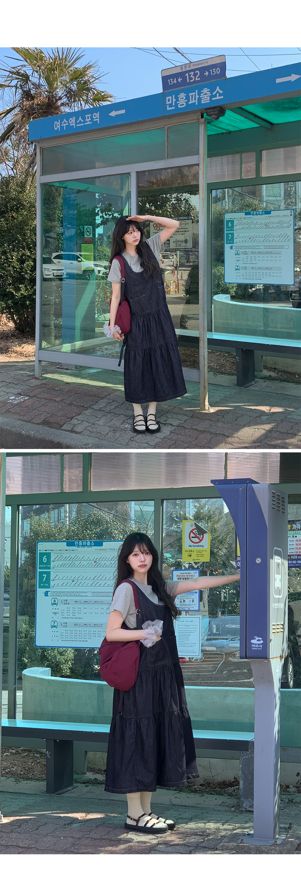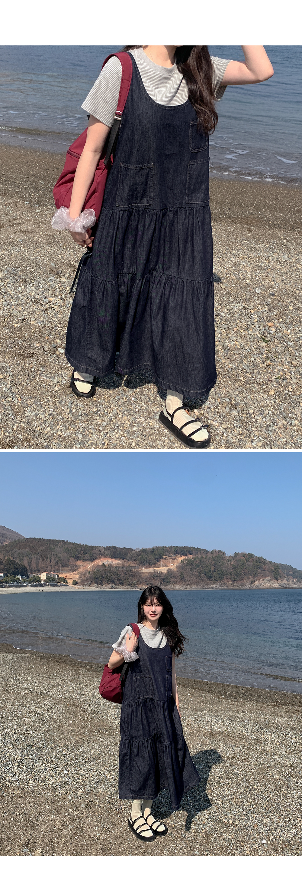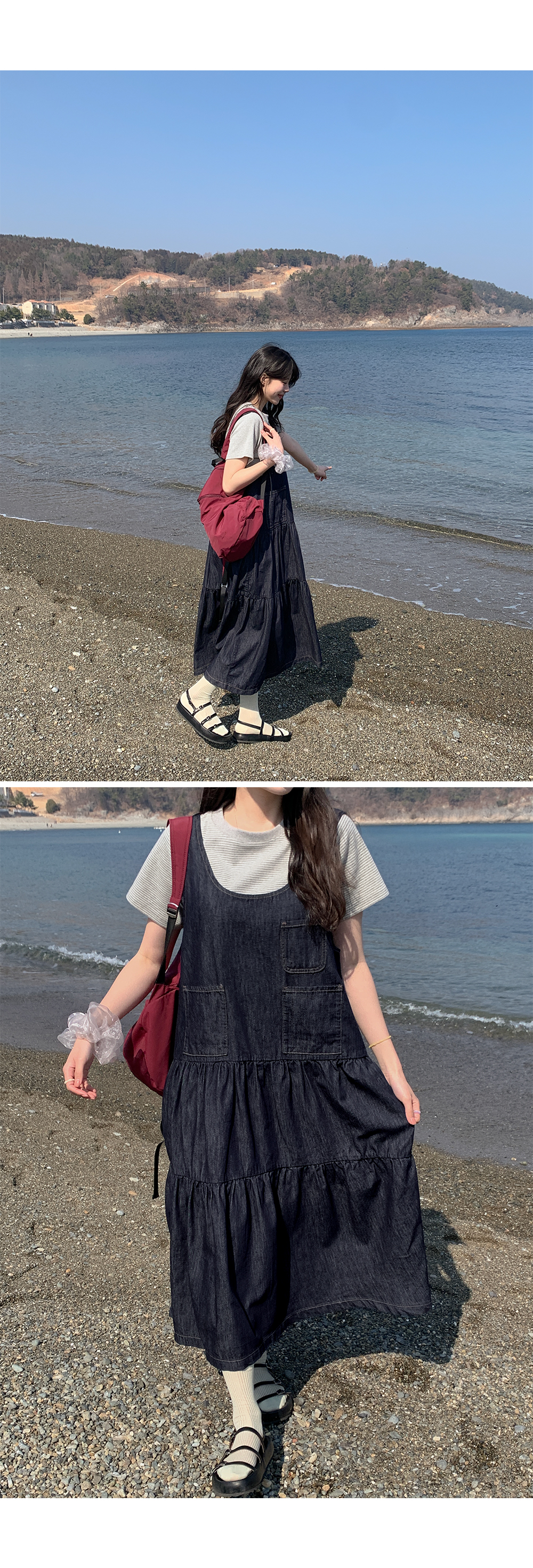 귀여운 캉캉 디자인을 더한 데님 원피스예요.
