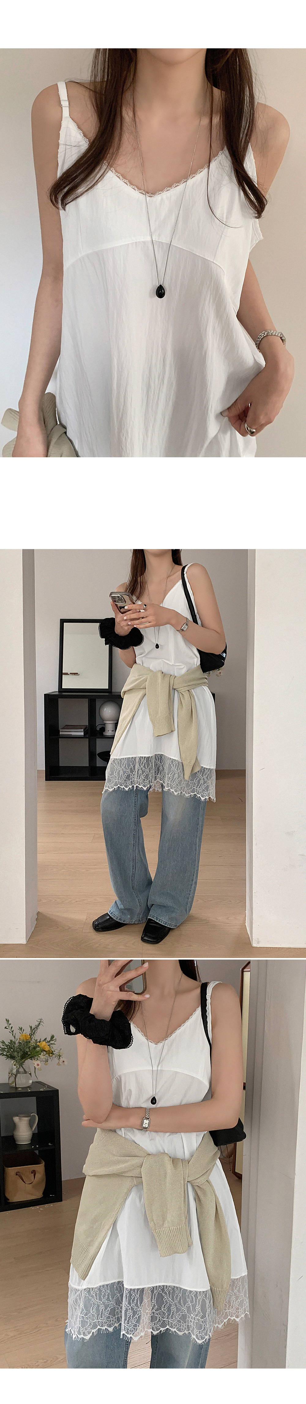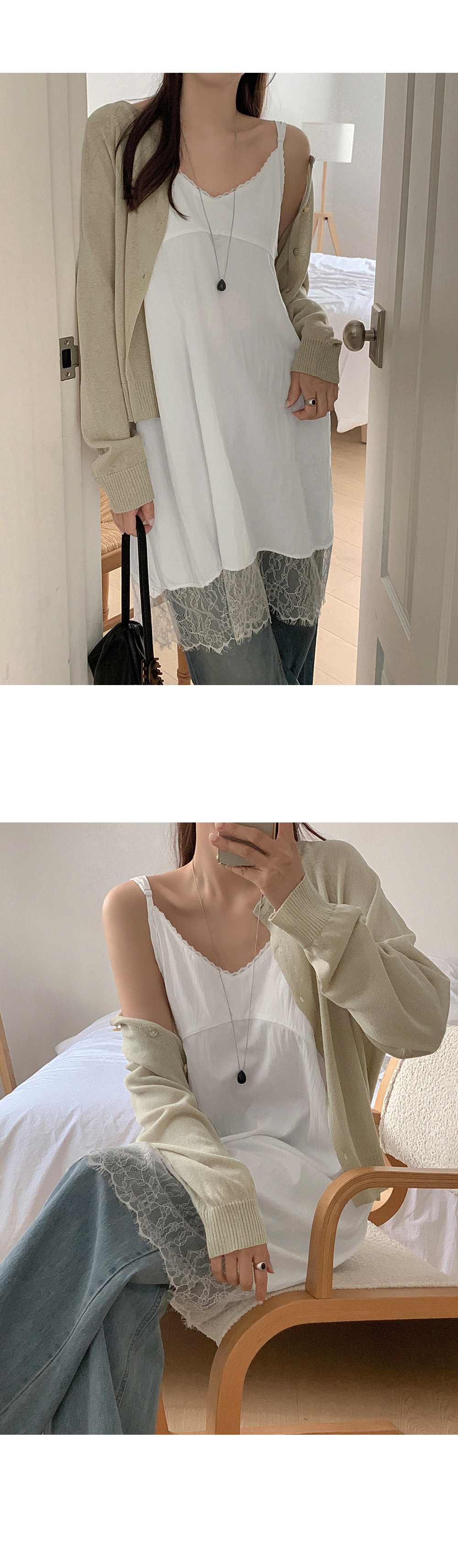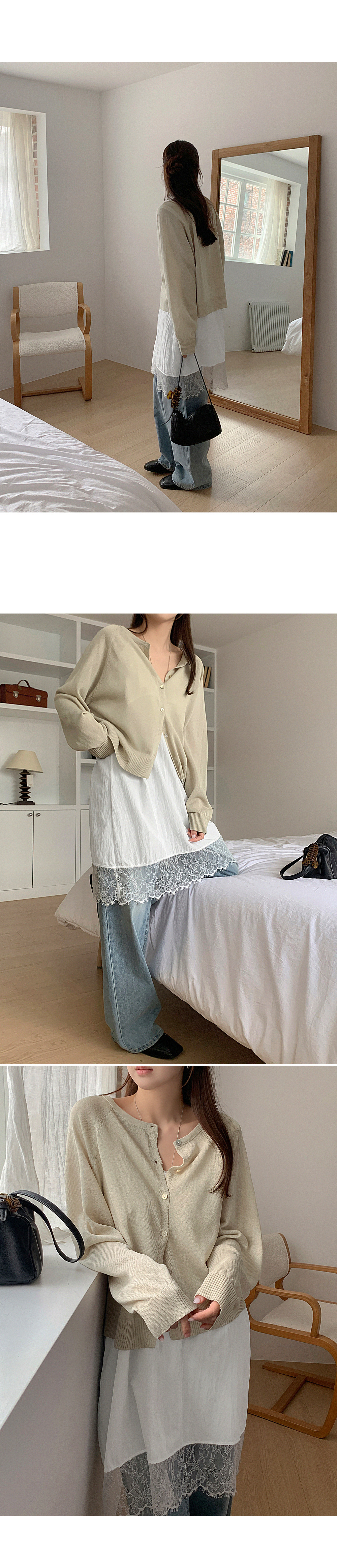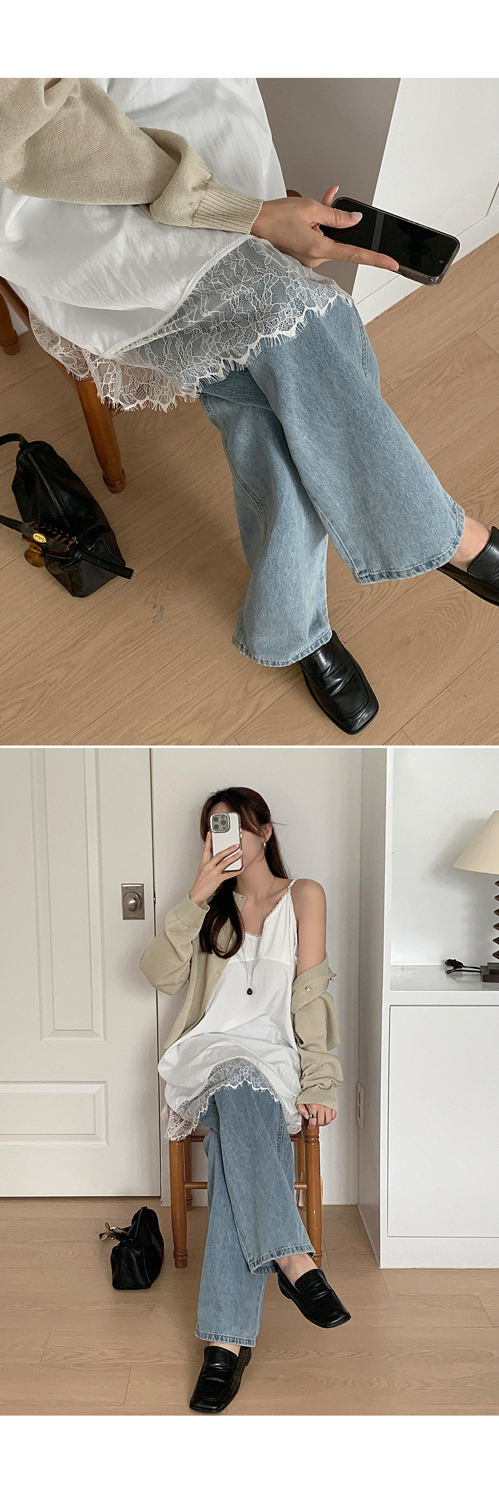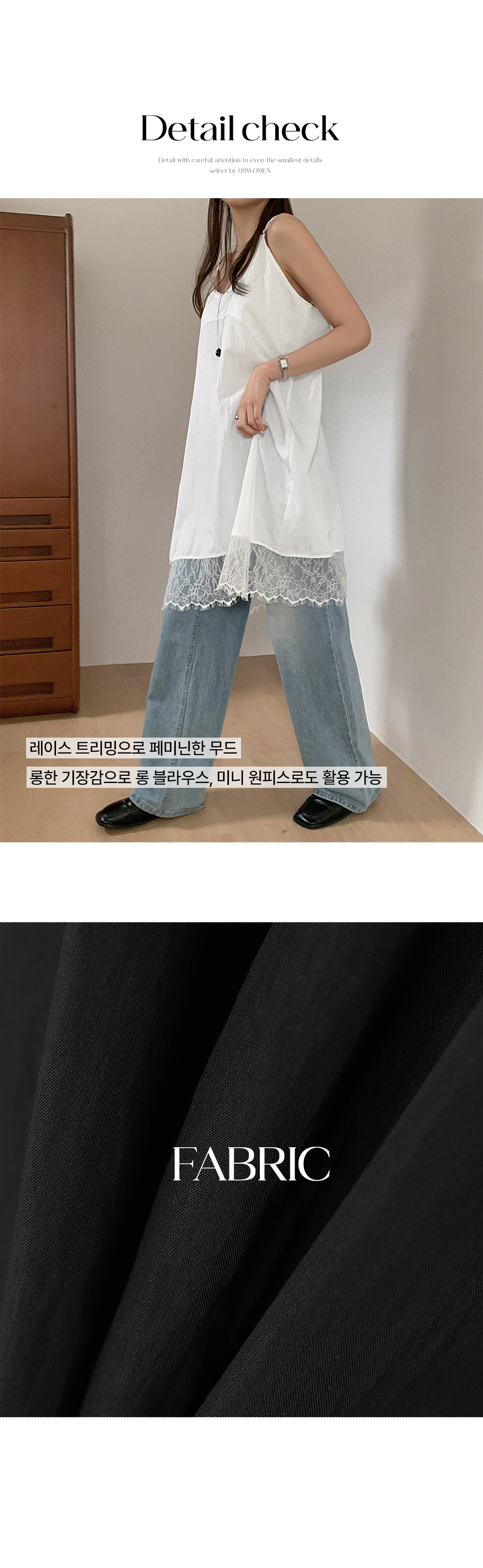- 레이스 트리밍으로 페미닌한 무드