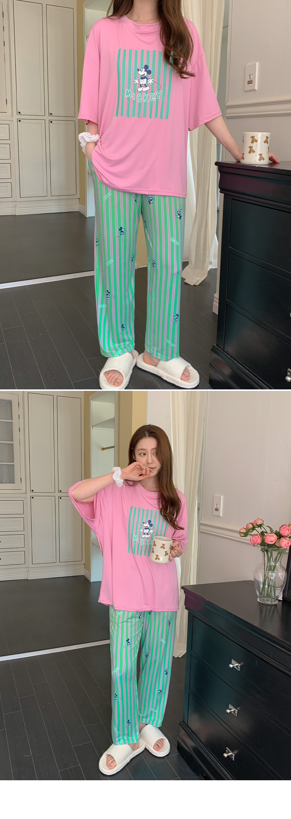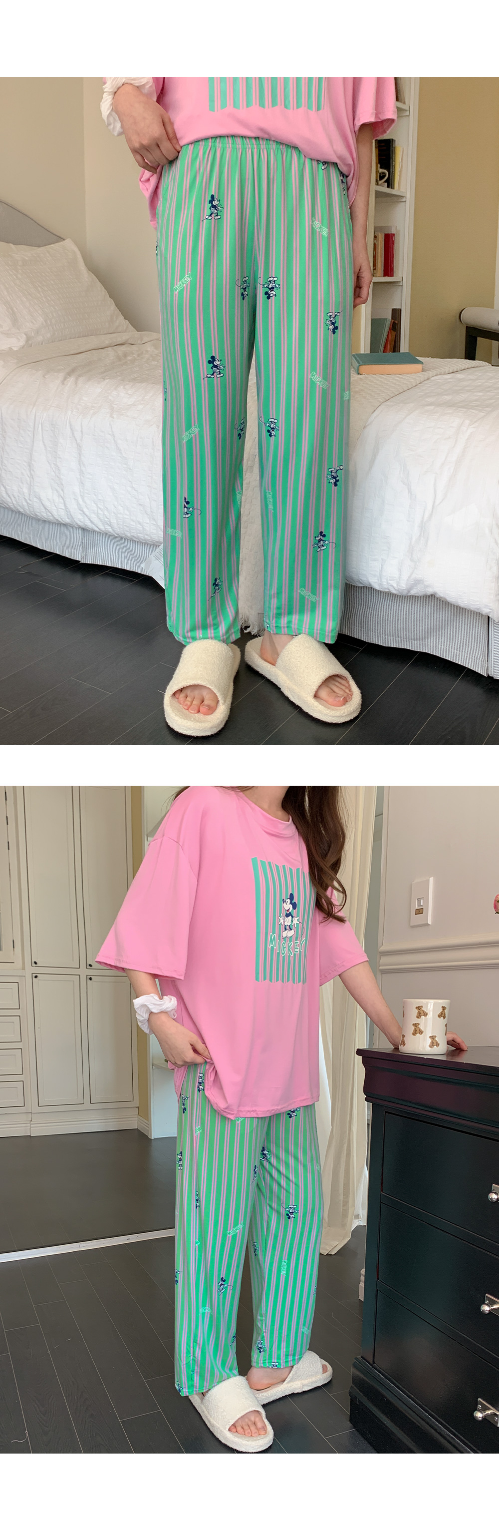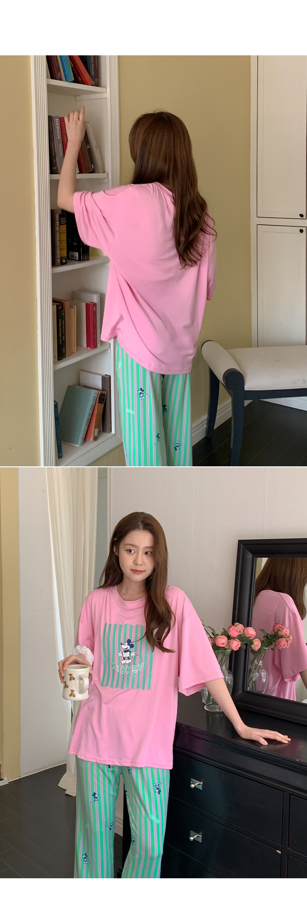 - 반팔 + 팬츠 세트 구성으로 간편한 홈웨어