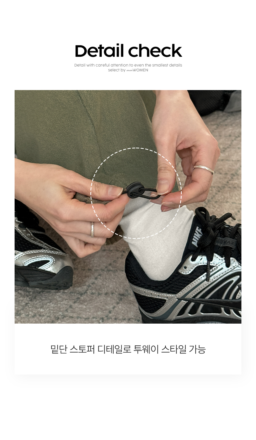 - 무릎 셔링 디테일로 핏을 더 느낌 있게 연출