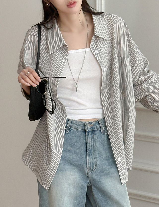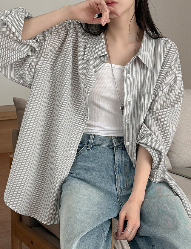 밀키파우더 ストライプ ルーズフィット シャツ 87148