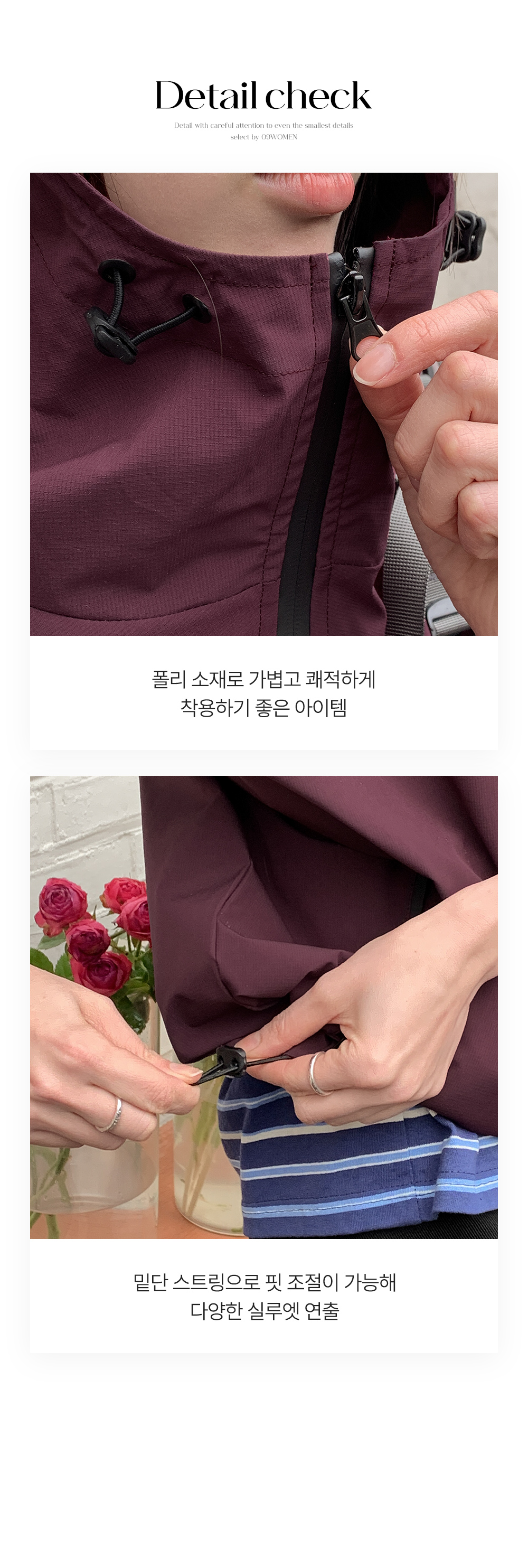- 밑단 스트링으로 핏 조절이 가능해