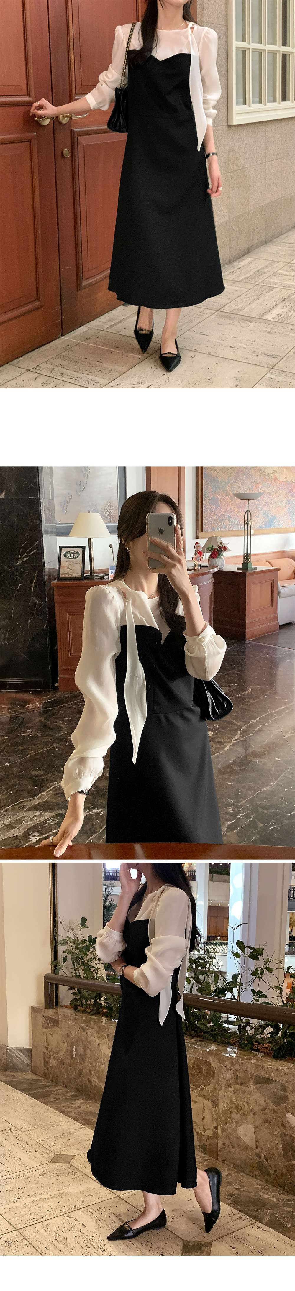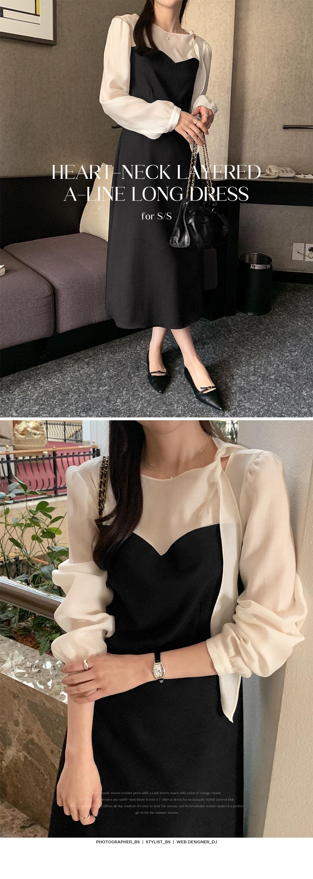 로레트 하트넥 レイヤード Aライン ロング ワンピース 87195