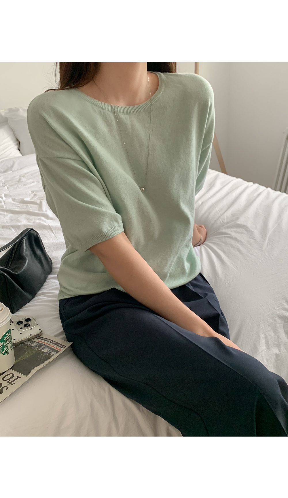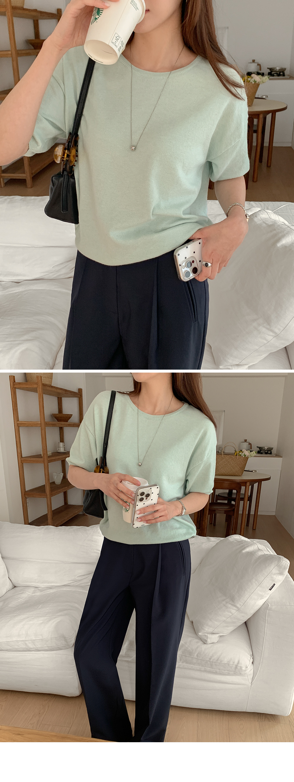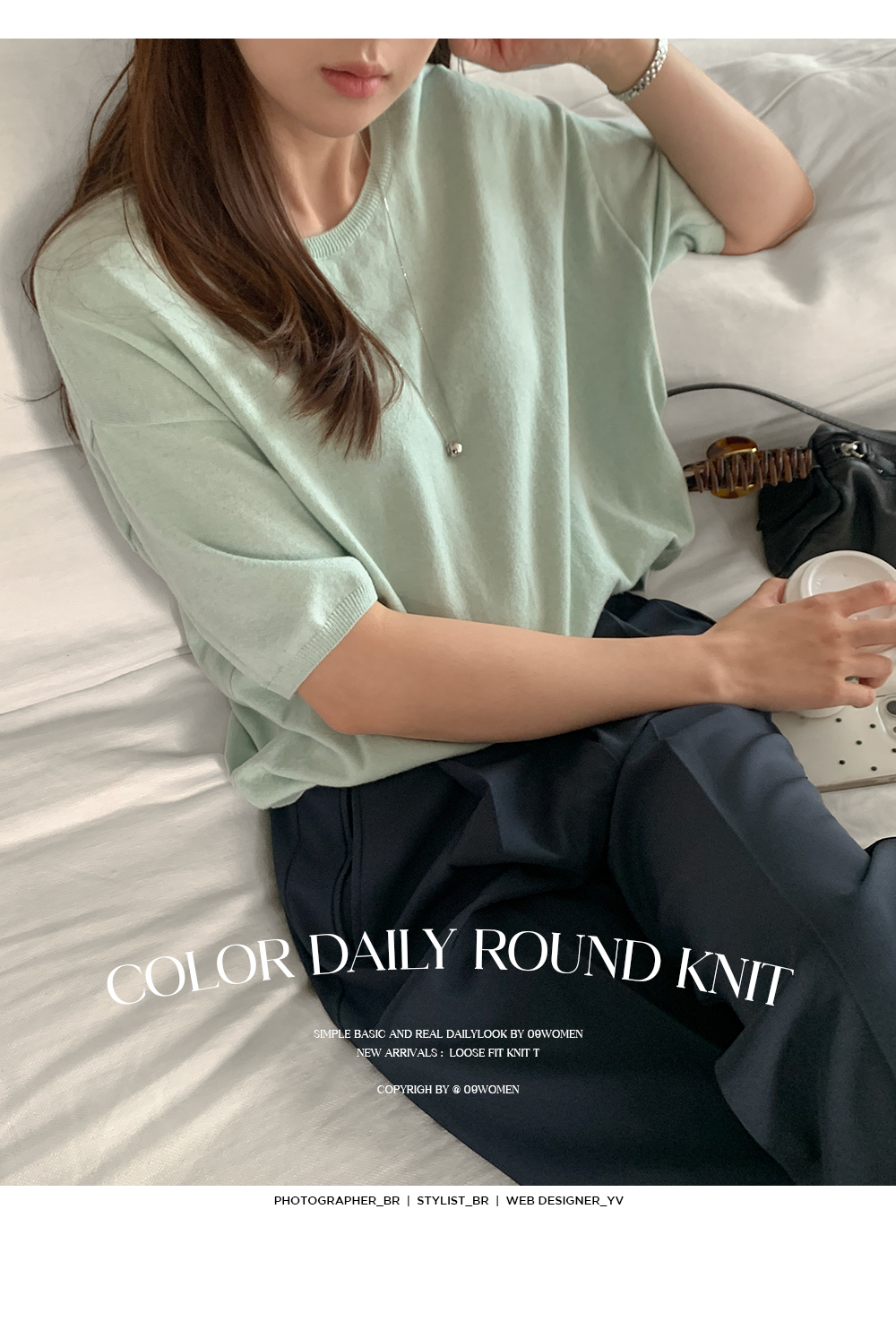 [カラー기획]스와치 カラー デイリー ラウンド 半袖 ニット 87020