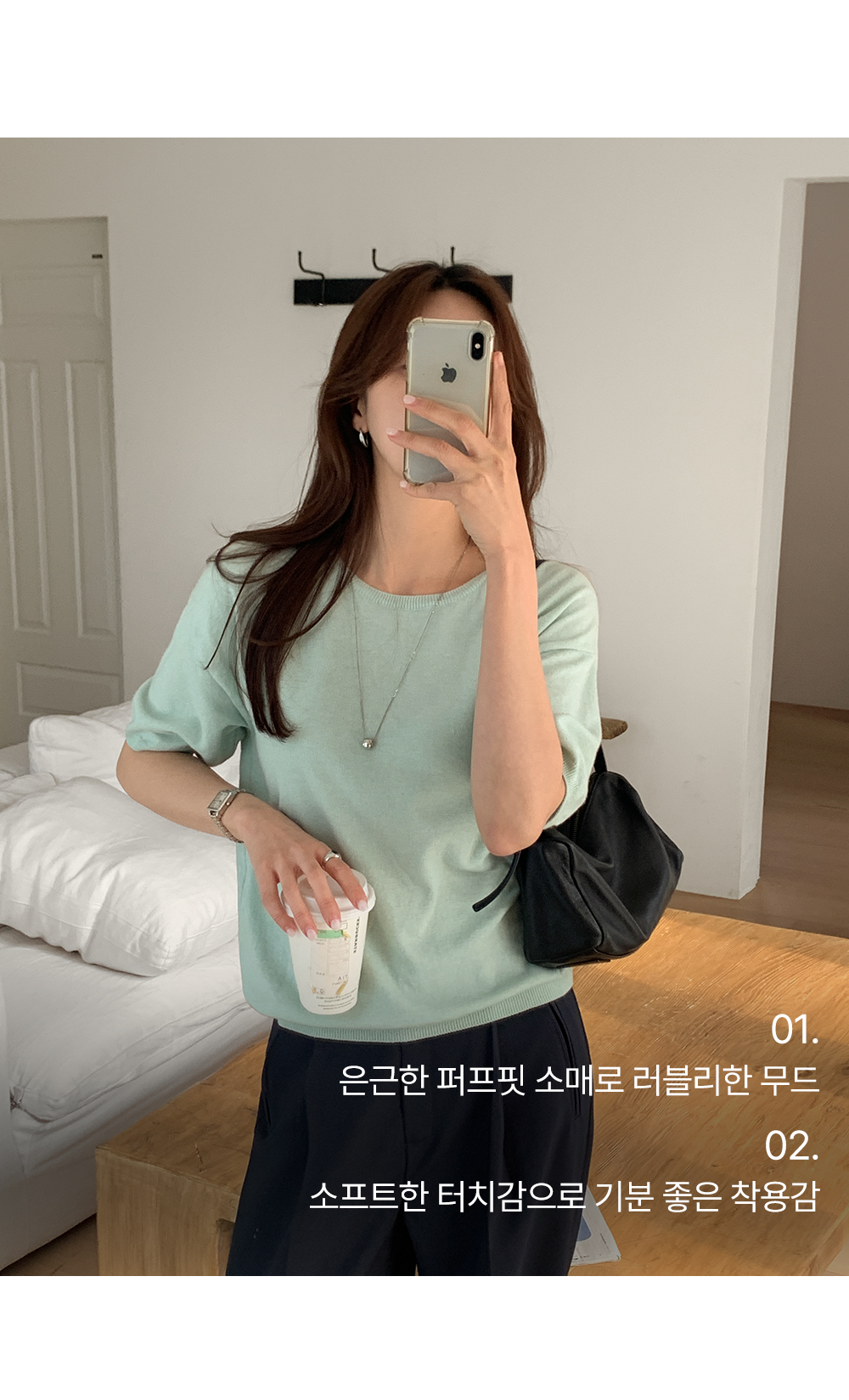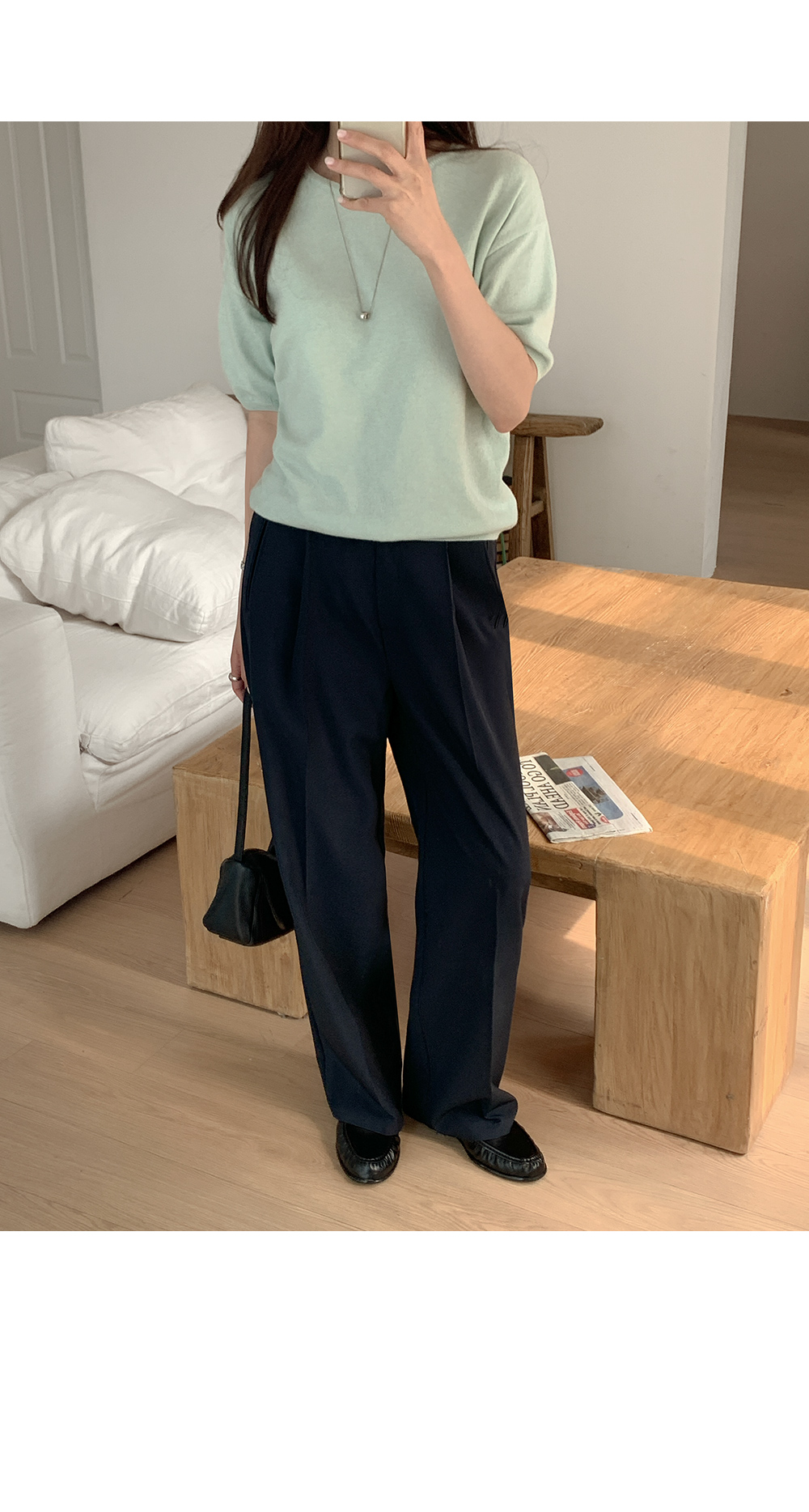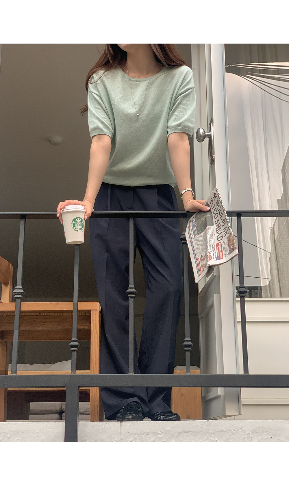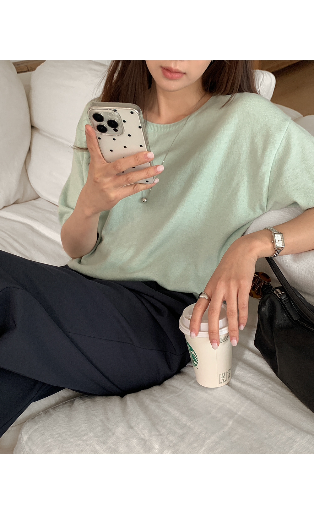 [カラー기획]스와치 カラー デイリー ラウンド 半袖 ニット 87020