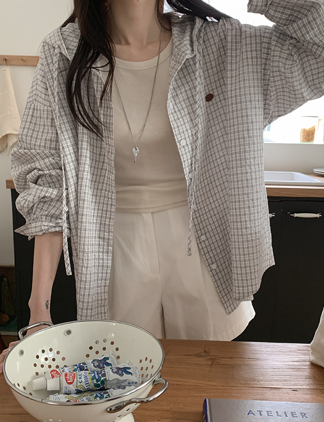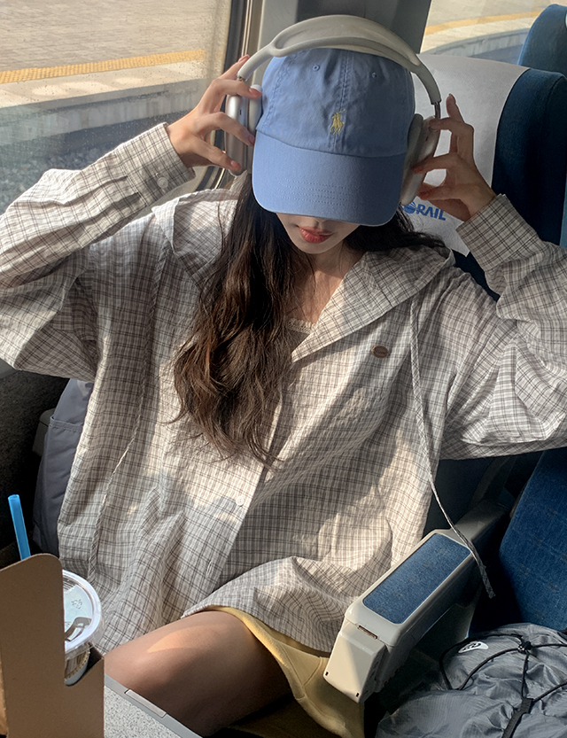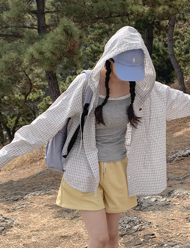 가볍게 툭- 걸쳐 입기 좋은 내추럴 후드 체크 셔츠