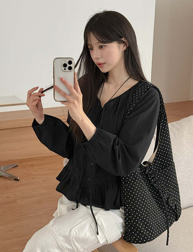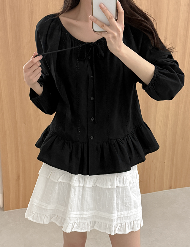 일레틴 パンチング レイス 셔링 ブラウス 87211