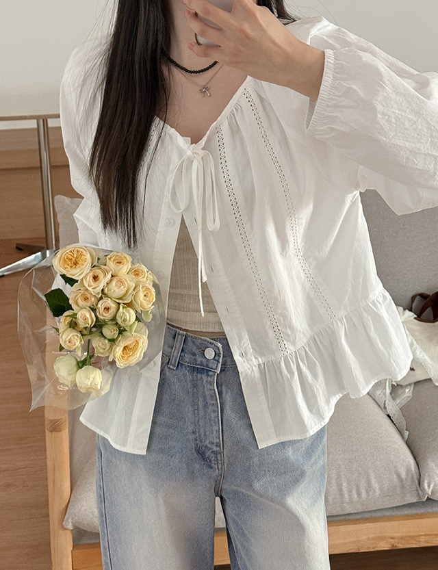 - 여리여리하고 여성스러운 무드의 레이스 블라우스