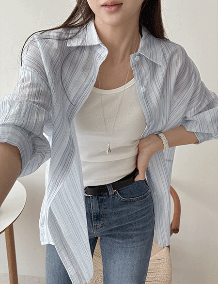 • [09초이스] 여리니 ルーズフィット ストライプ シャツ 87224